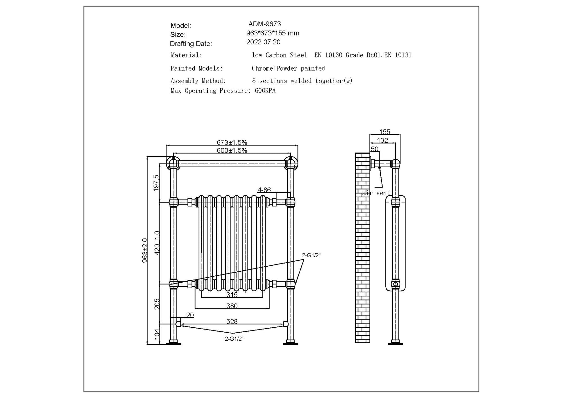 Product Assurances: UKCA Marked, BSEN442 Certified,10 Years (Towel Rail), 2 Year (Element)