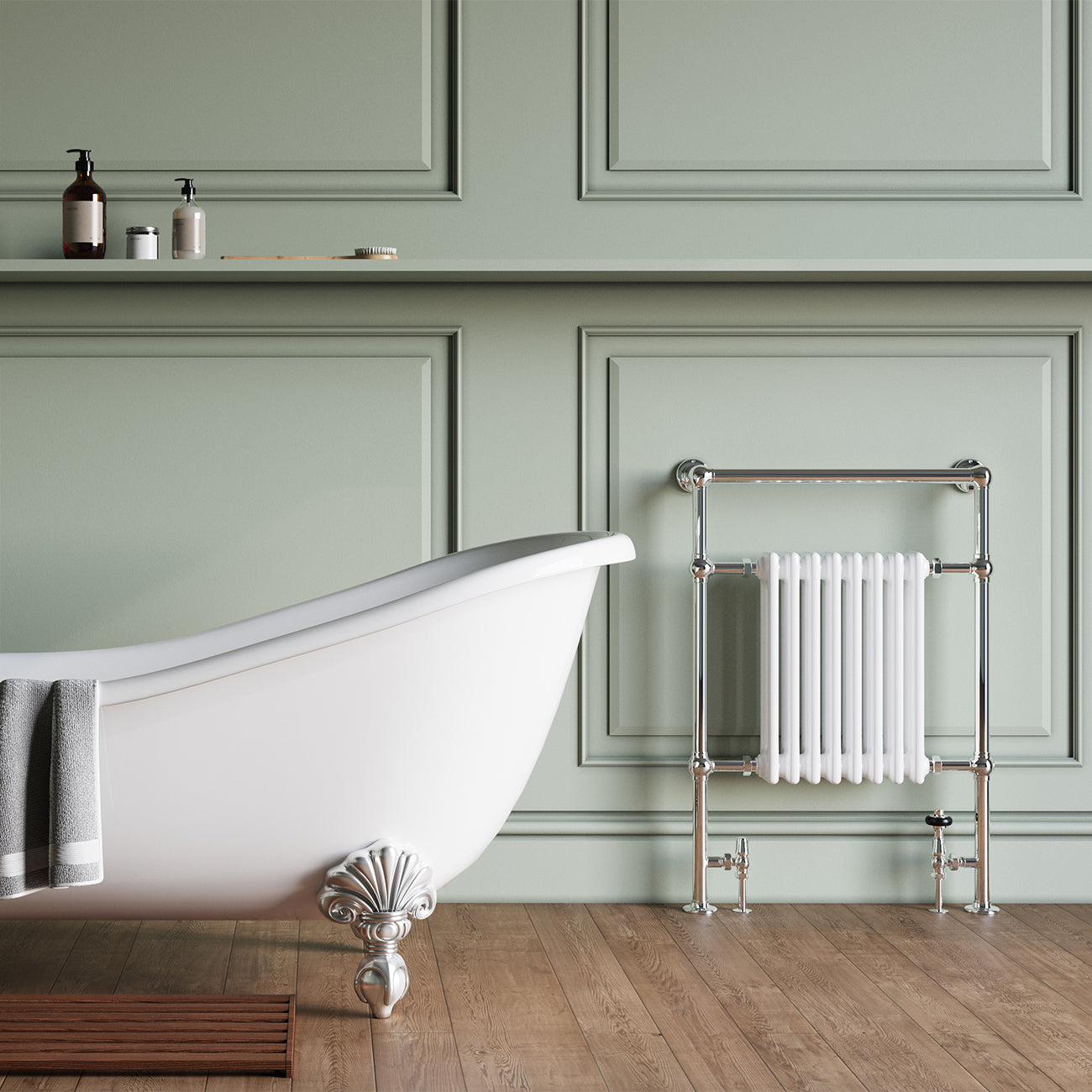 Adisham - Traditional Towel Radiator - H963mm x W673mm - Floor Standing