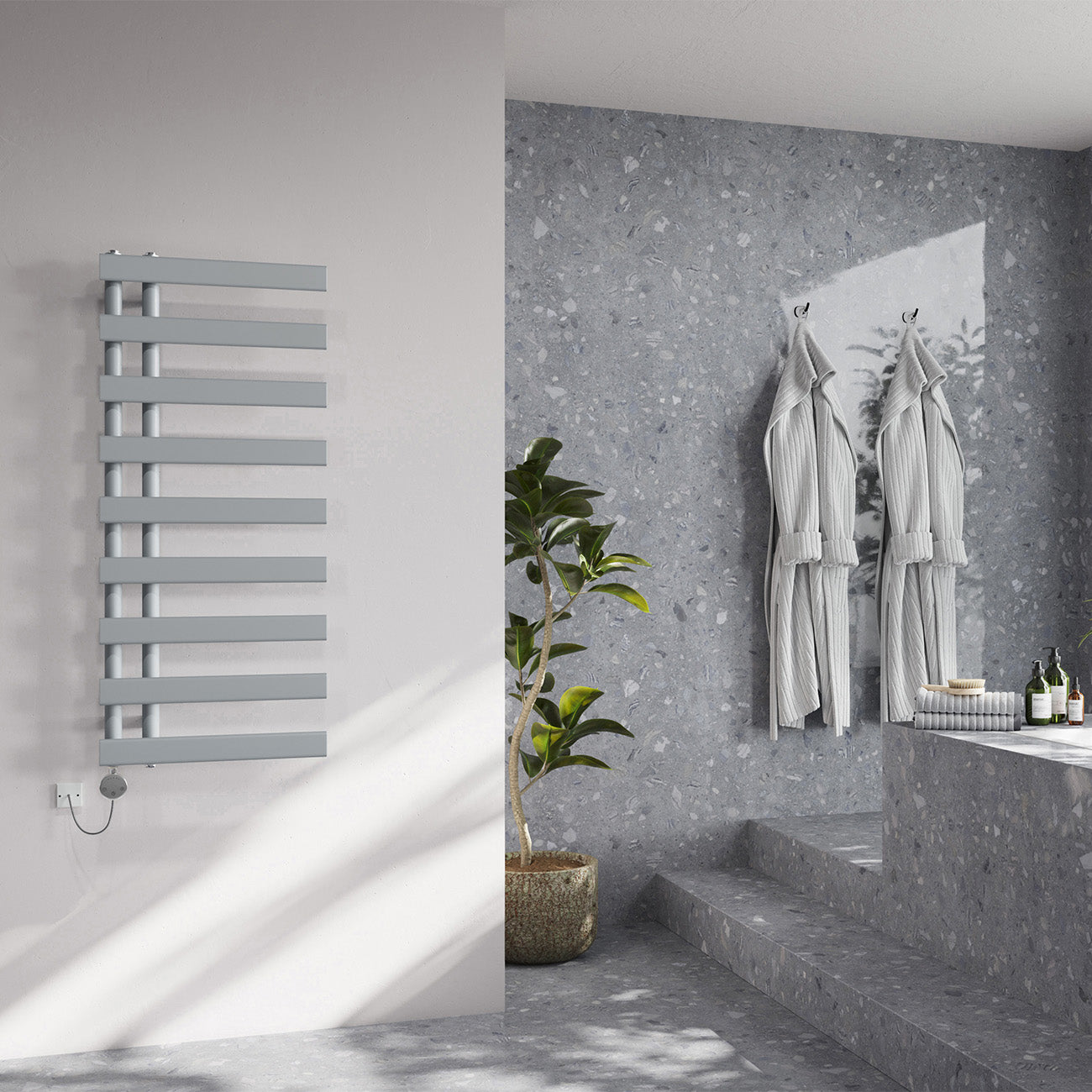 Heat SourceThis electric towel rail comes with an electric element and works completely independently from any other heating system you may have in your home and so is ideal for those bathrooms where you can’t access a central heating system or maybe guest bathrooms rooms that very rarely used. This independence is ideal for summer, providing warm toasty towels without turning on the boiler - saving energy and money.