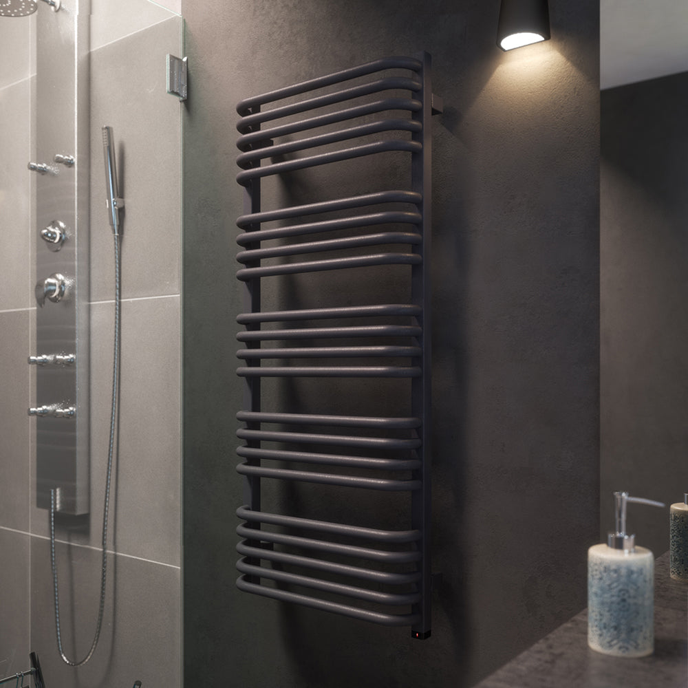 Alex One - Modern Grey Electric Towel Rail H1140mm x W500mm 600w Thermostatic
