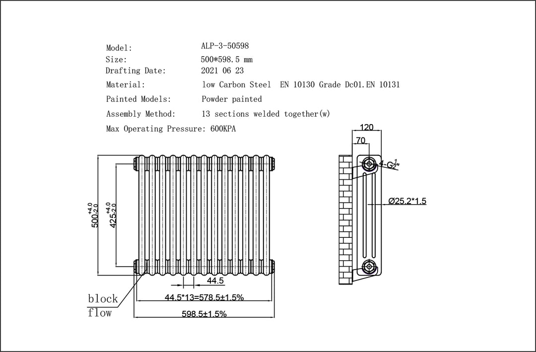 Supplied with: Wall Brackets,Masonry Fixings,Column Radiator Feet,Bleed Valve & Blanking Plug Included