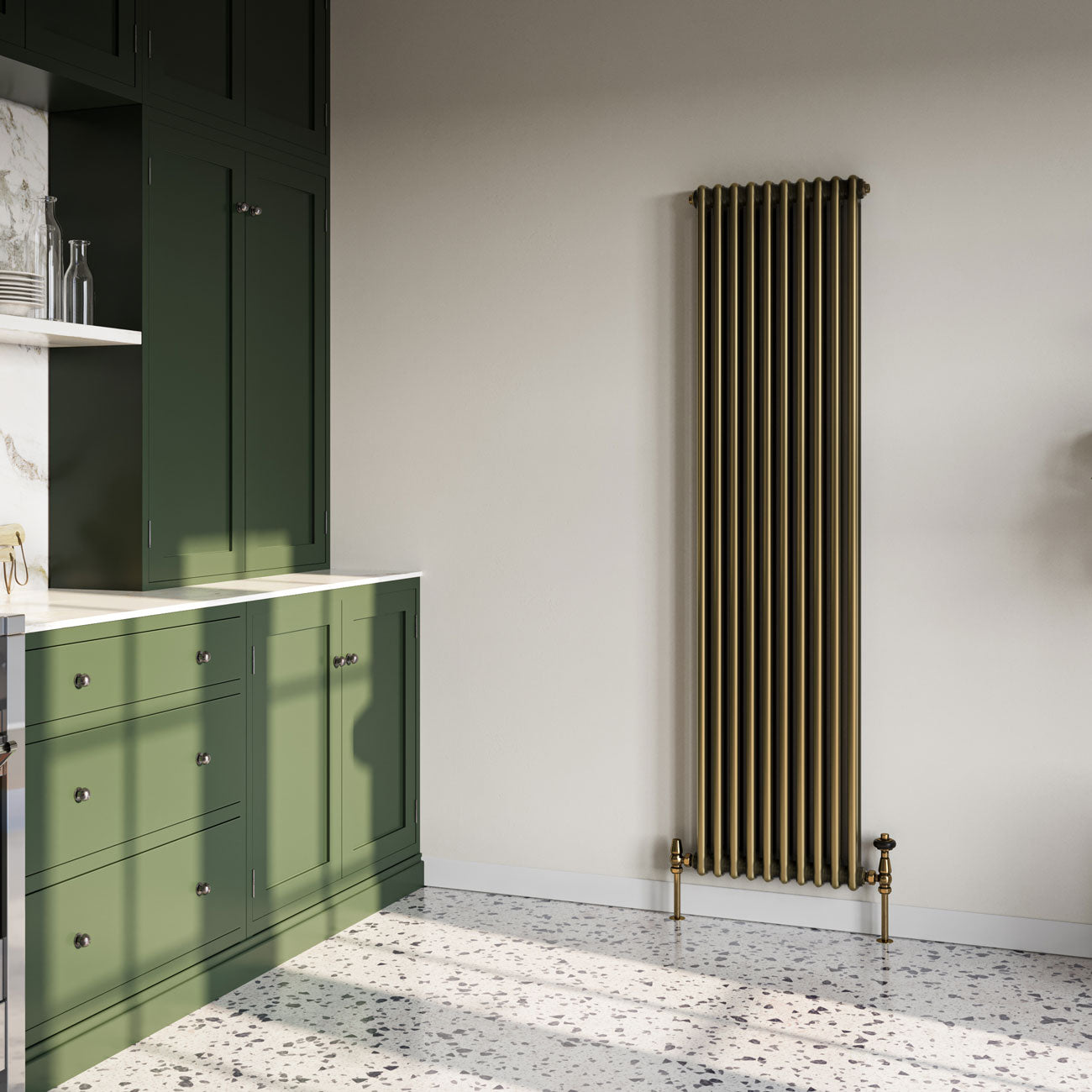 Alpha - Antique Brass Vertical Column Radiator H1800mm x W460mm 2 Column
