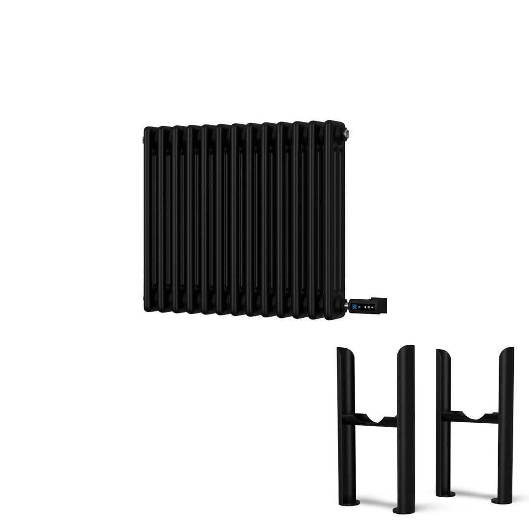 Alpha - Black Column Electric Radiator H500mm x W599mm 3 Column 600w Thermostatic WIFI- Feet Included