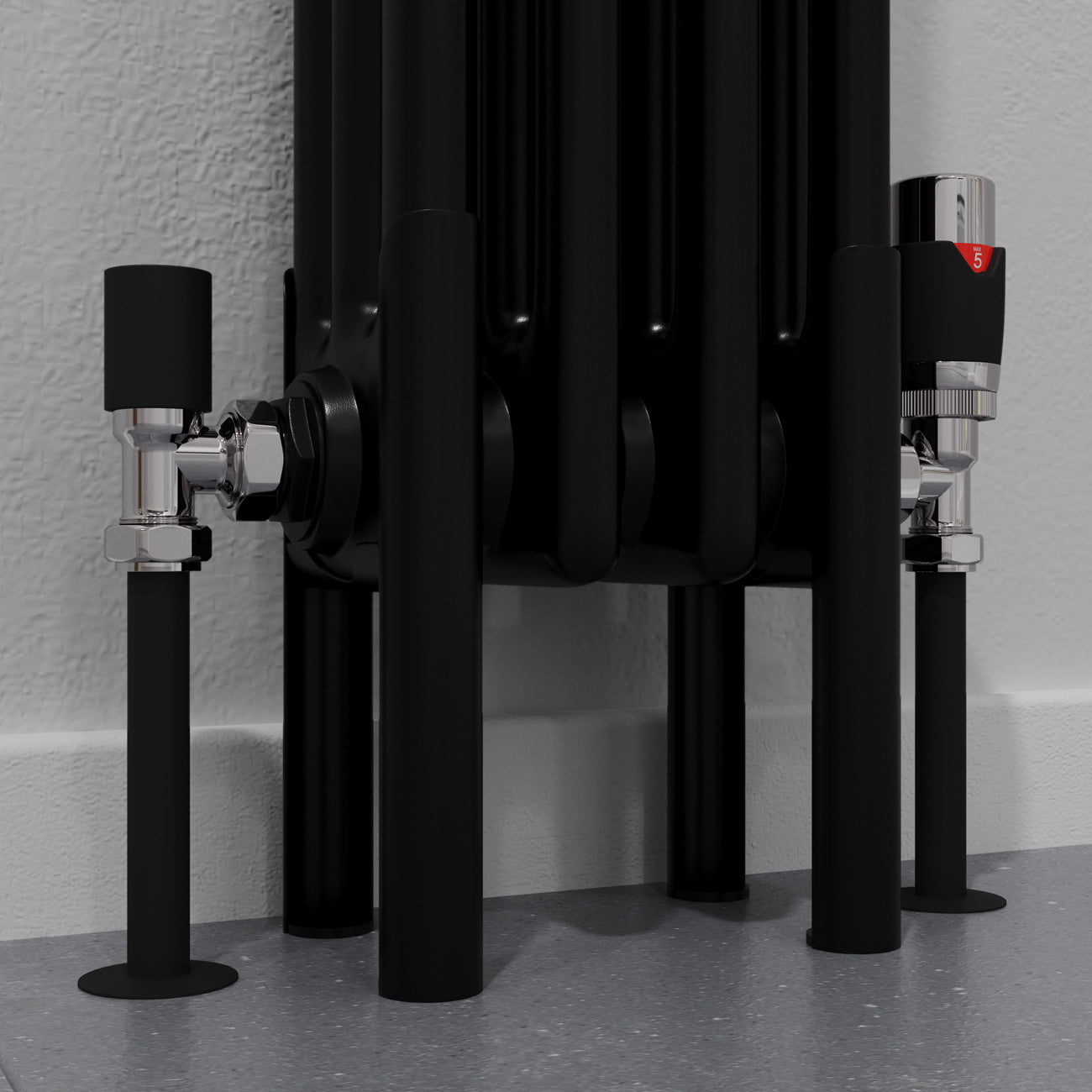 This radiator is provided with wall mounting brackets and column radiator feet are not a requirement. However, if you want to emphasize traditional style then we definitely recommend purchasing some colour matching feet. The feet can be used along with the wall brackets to help carry some of the weight of the radiator. Alternatively, don’t use the wall brackets provided and instead purchase some wall stays in either a matching or contrasting colour!