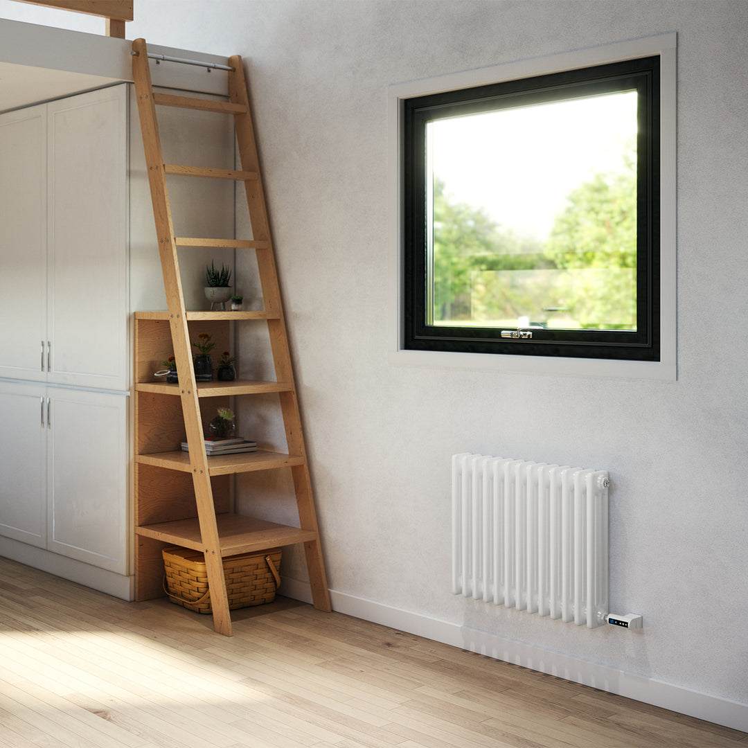 Alpha - White Column Electric Radiator H500mm x W599mm 3 Column 600w Thermostatic WIFI- Feet Included