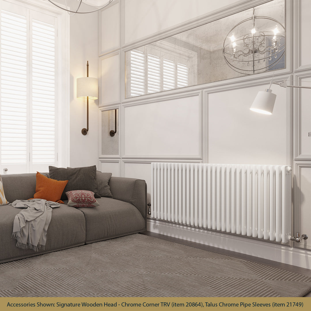 Columns“Column” refers to the style of radiator but when there is a number in in front of this – e.g. “4 Column”, we’re talking about the structure of the radiator itself. Column radiator sections are made from vertical tubes which are connected at the top and bottom, the number comes from the how many vertical tubes there are in these sections. A 2 column radiator has 2 vertical tubes, a 3 column has 3 and so on. Typically, 4 column radiators are used where high heat output is needed such as hallways, kitchens and living rooms. If you’re lucky enough to own a gorgeous period property with large, tall rooms then 4 column radiators will likely be the best option for you. Despite these column radiators being a little bulkier than 2 or 3 column radiators, their heat output is superb and their attractive design can often be used as a focal point or a statement in any room.