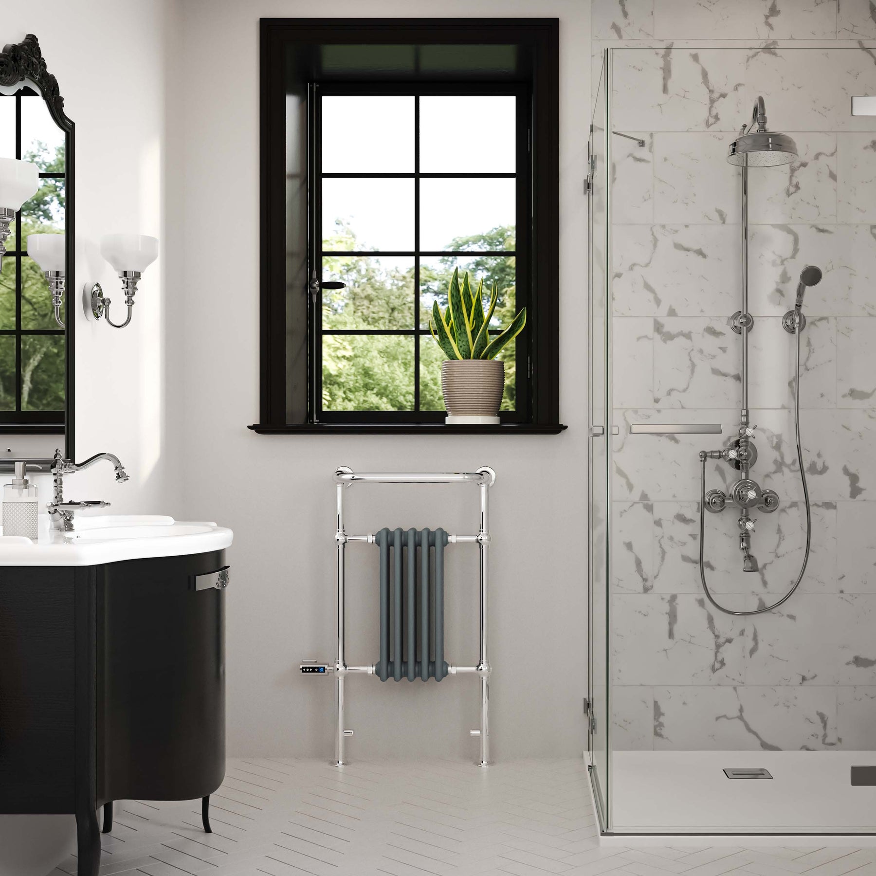 Arundel - Anthracite Traditional Electric Towel Rail H963mm x W538mm 300w Thermostatic WIFI