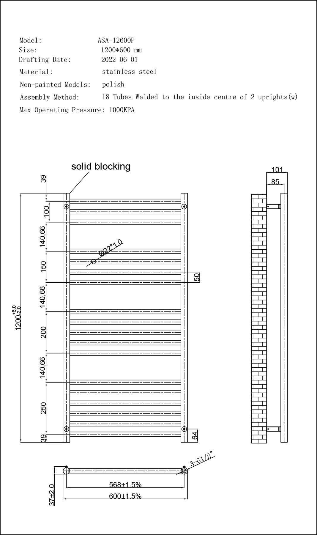Supplied with: Wall Brackets,Masonry Fixings,Bleed Valve & Blanking Plug Included