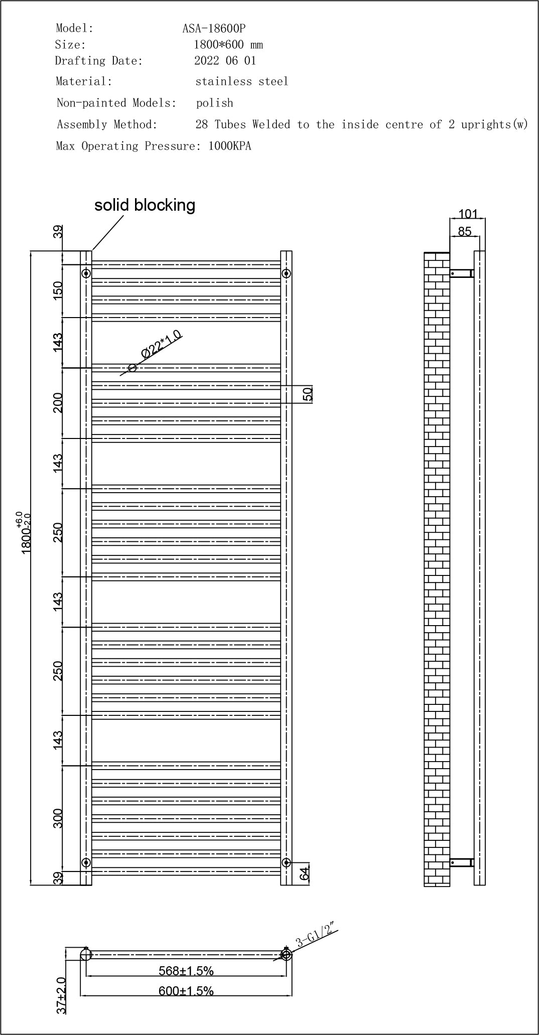 Supplied with: Wall Brackets,Masonry Fixings,Bleed Valve & Blanking Plug Included