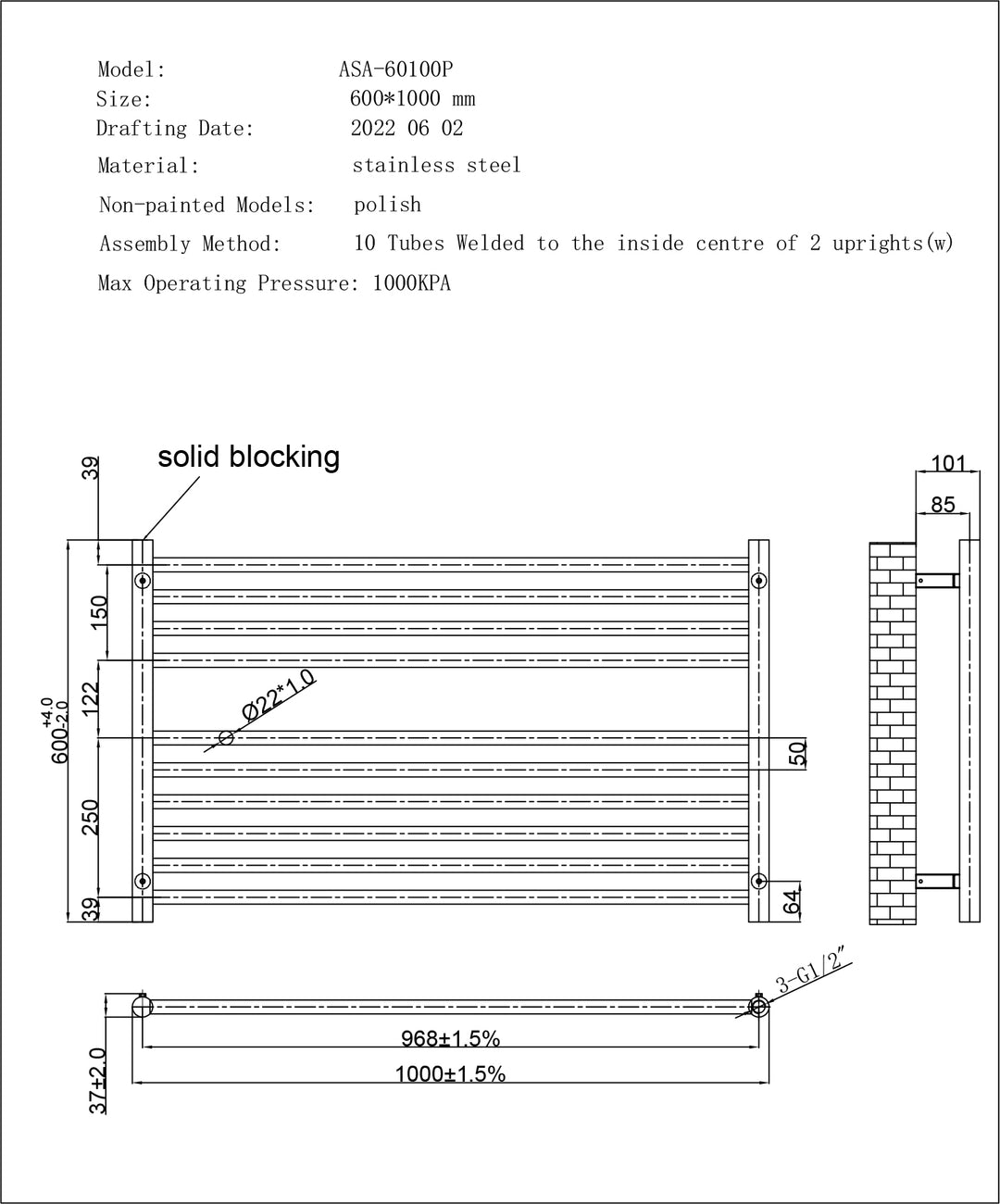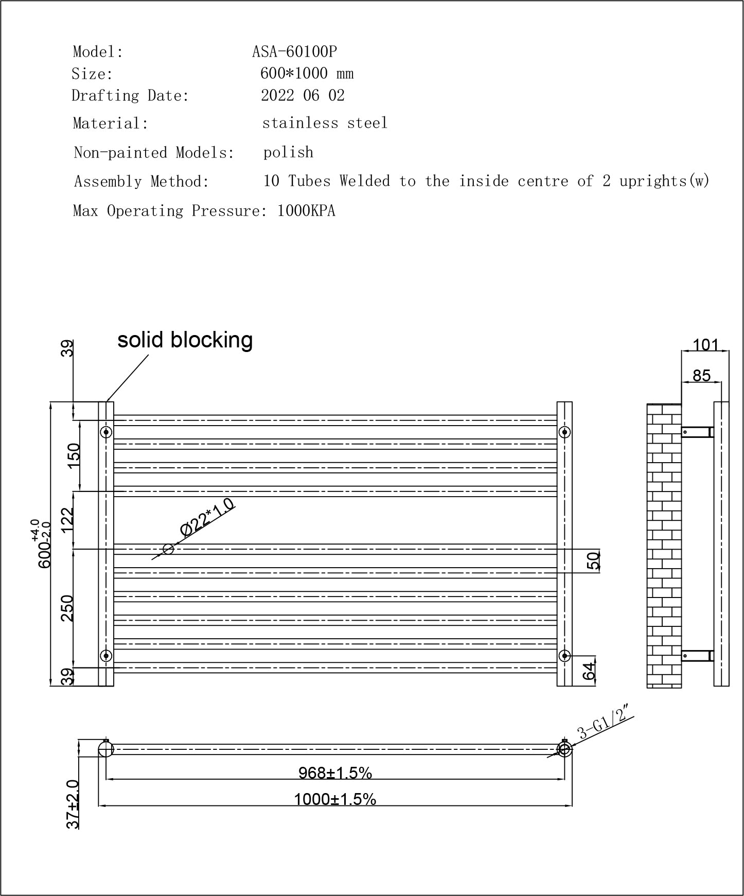 Supplied with: Wall Brackets,Masonry Fixings,Bleed Valve & Blanking Plug Included