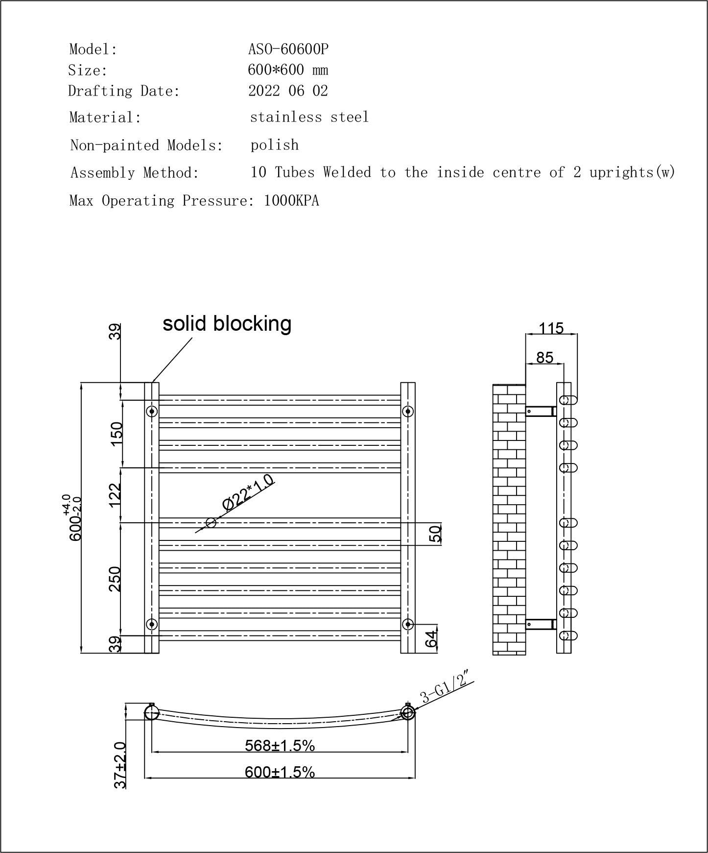 Supplied with: Wall Brackets,Masonry Fixings,Bleed Valve & Blanking Plug Included