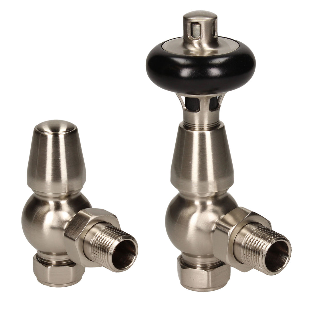 Bentley Tradtional - Silver Nickel Thermostatic Radiator Valve & Lockshield Angled 15mm