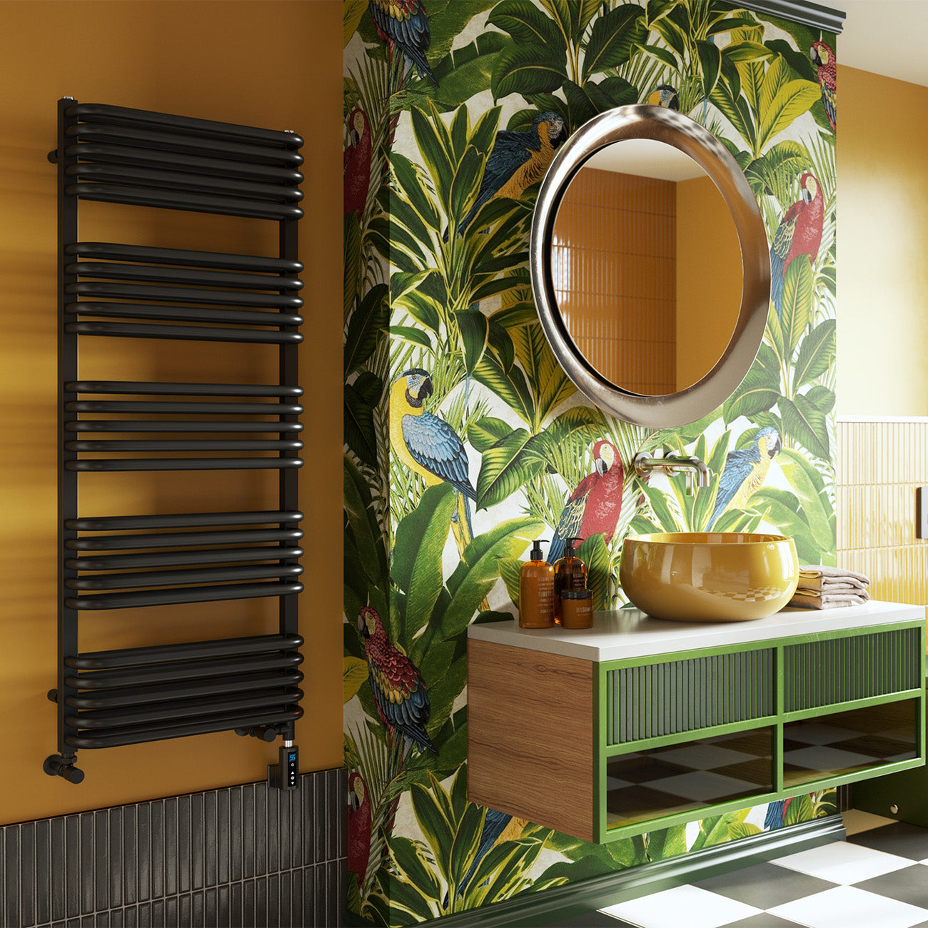 Crossmoor - Black Dual Fuel Towel Rail H1269mm x W500mm Thermostatic WIFI