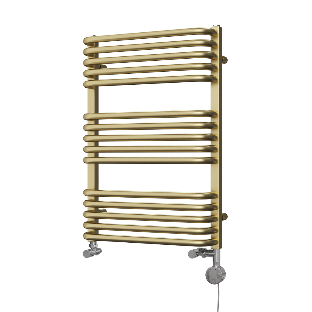 Crossmoor - Brushed Brass Dual Fuel Towel Rail H736mm x W500mm Thermostatic