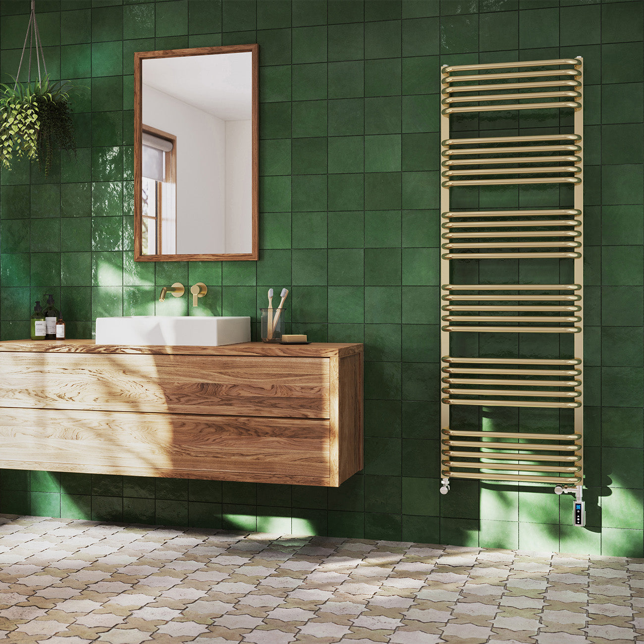 Crossmoor - Polished Brass Dual Fuel Towel Rail H1533mm x W500mm Thermostatic WIFI