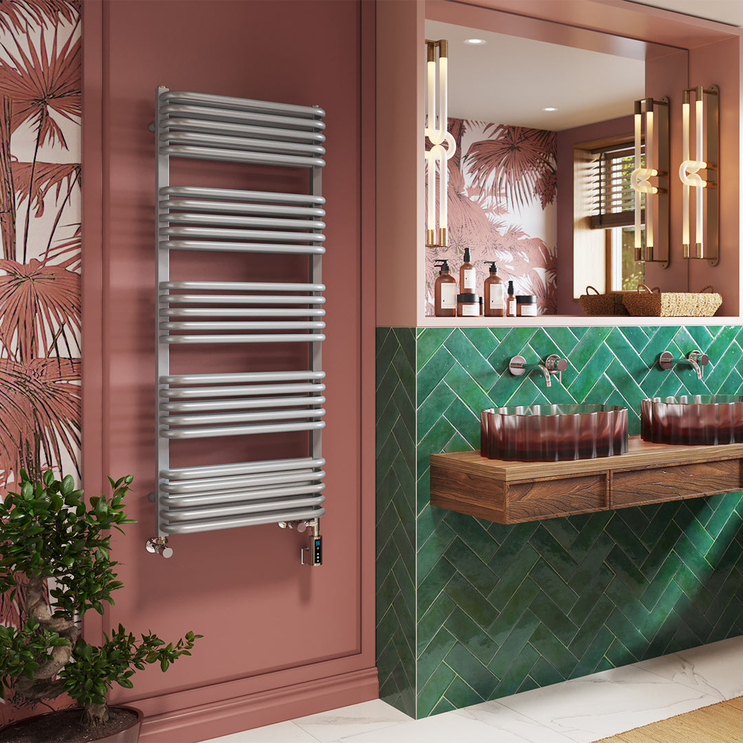 Crossmoor - Silver Dual Fuel Towel Rail H1269mm x W500mm Thermostatic WIFI