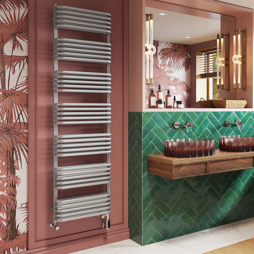 Crossmoor - Silver Dual Fuel Towel Rail H1800mm x W500mm Thermostatic WIFI