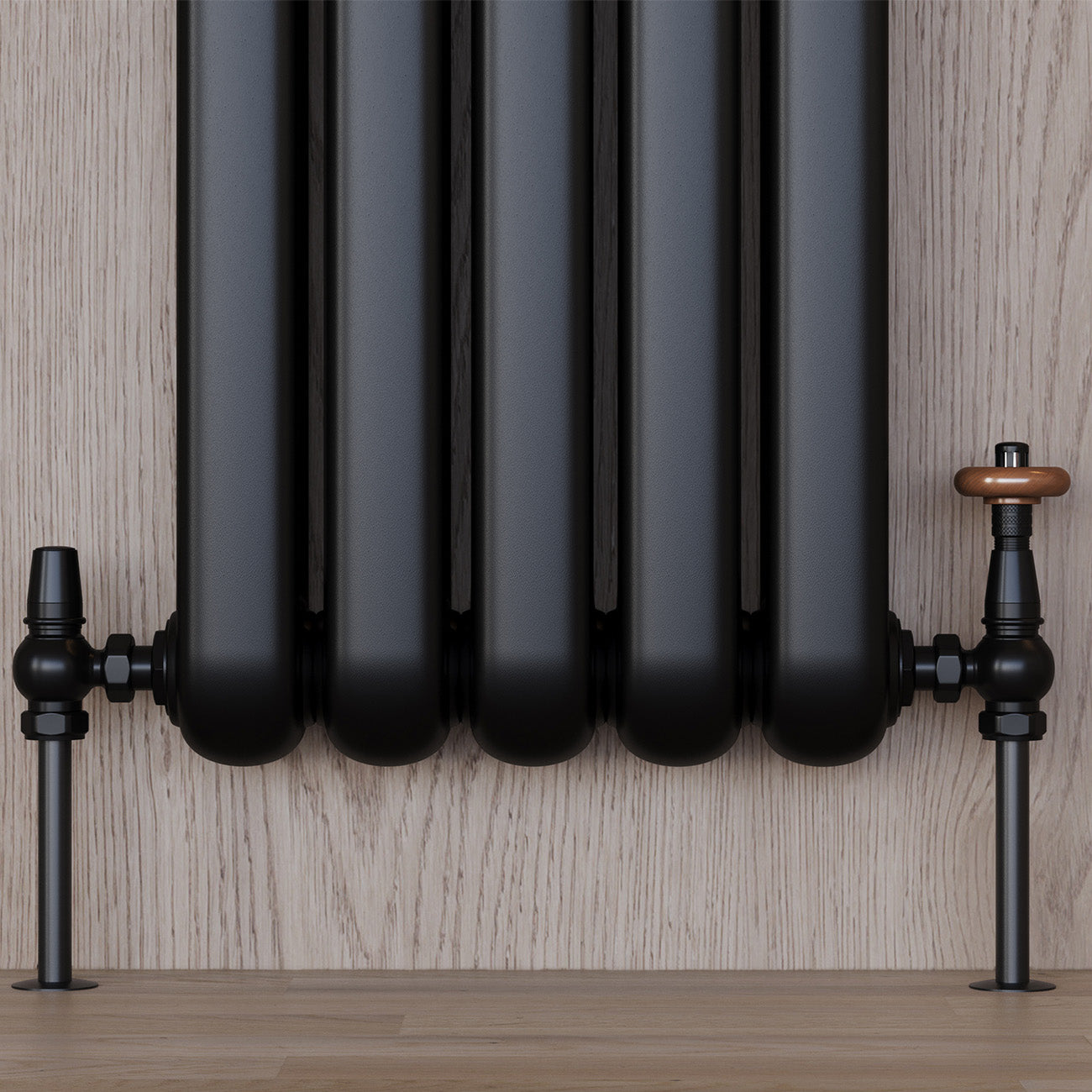 - Pipework comes out of the wall and the radiator has connections at the bottom, but the valve itself will protrude in front of the radiator, so where this is the case, we recommend corner radiator valves.