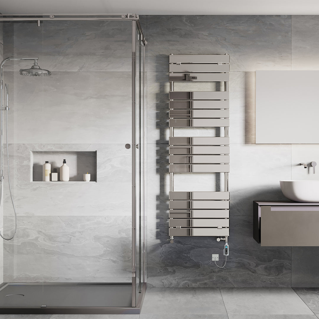 Egadi - Chrome Dual Fuel Towel Rail H1512mm x W500mm Thermostatic WIFI - Straight