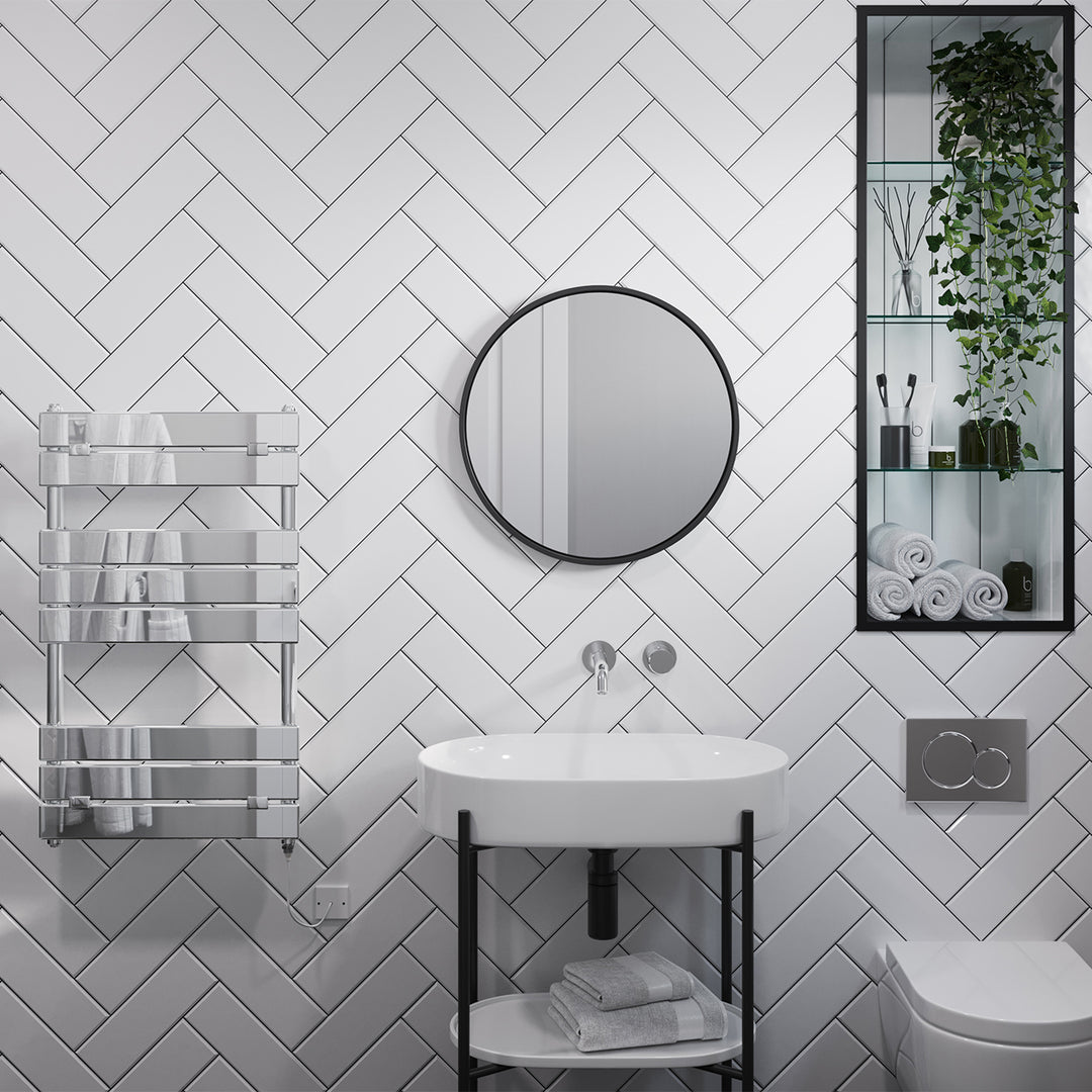 ColourChrome has a reflective, mirrored finish makes it a popular choice for bathrooms. It adds a touch of shine and sparkle in the room and can mesh with your chrome taps and showers perfectly. Just like mirrors, a chrome towel rail can make a bathroom feel bigger – that’s right, a towel rail and an optical illusion!