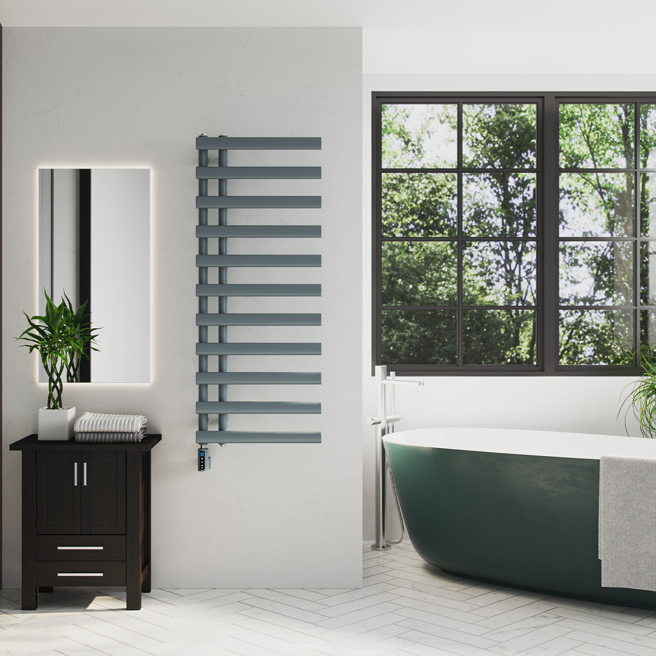 Elyan - Anthracite Electric Towel Rail H1238mm x W500mm 500w Thermostatic WIFI