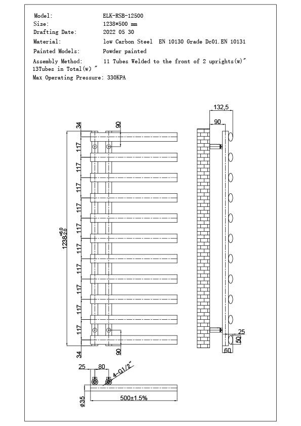 Product Assurances: UKCA Marked, BS EN 442 Certified, 10 Years (Towel Rail), 2 Year (Element) Guarantee