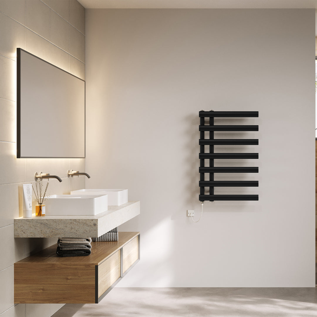 Elyan - Black Electric Towel Rail H766mm x W500mm 300w Standard