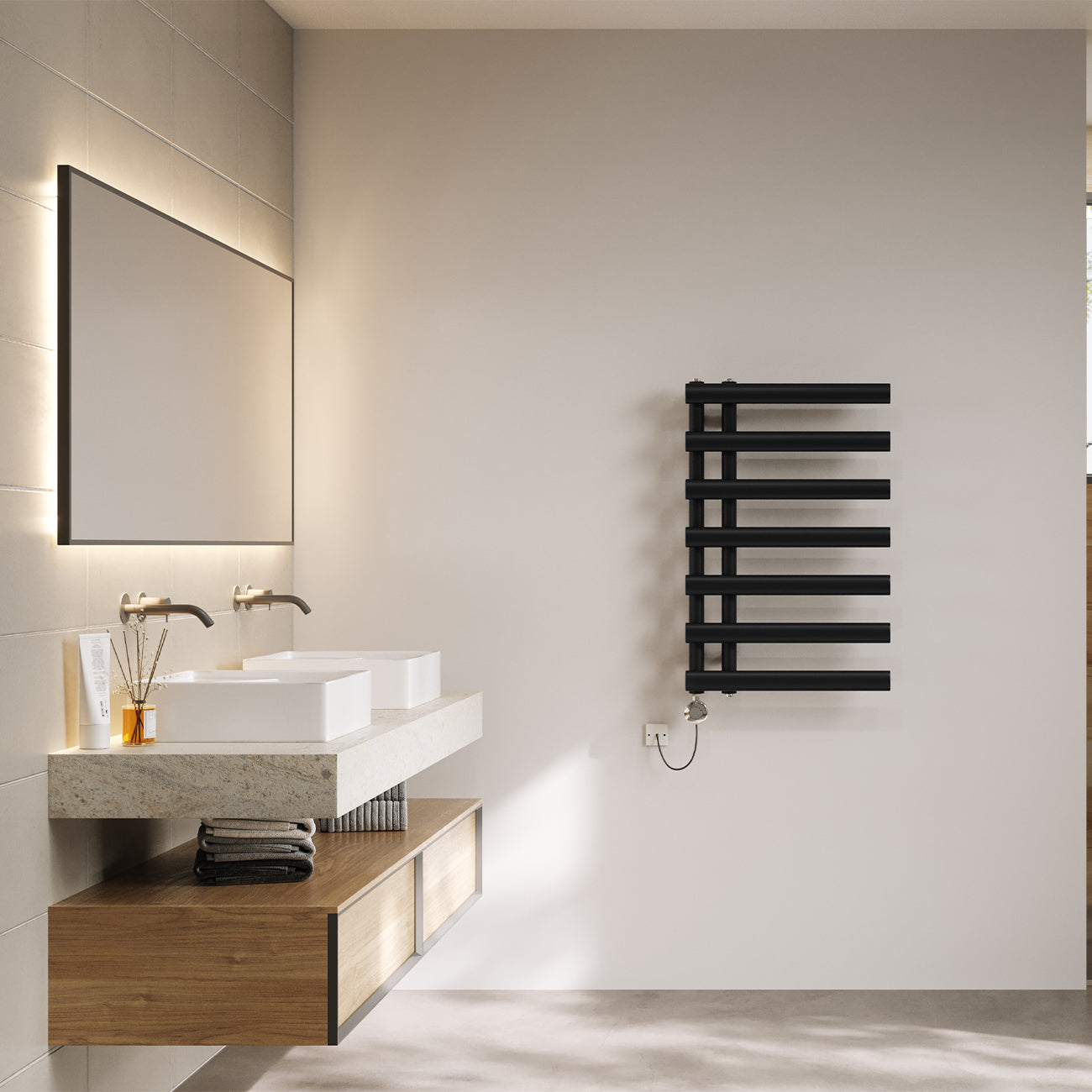 Elyan - Black Electric Towel Rail H766mm x W500mm 300w Thermostatic