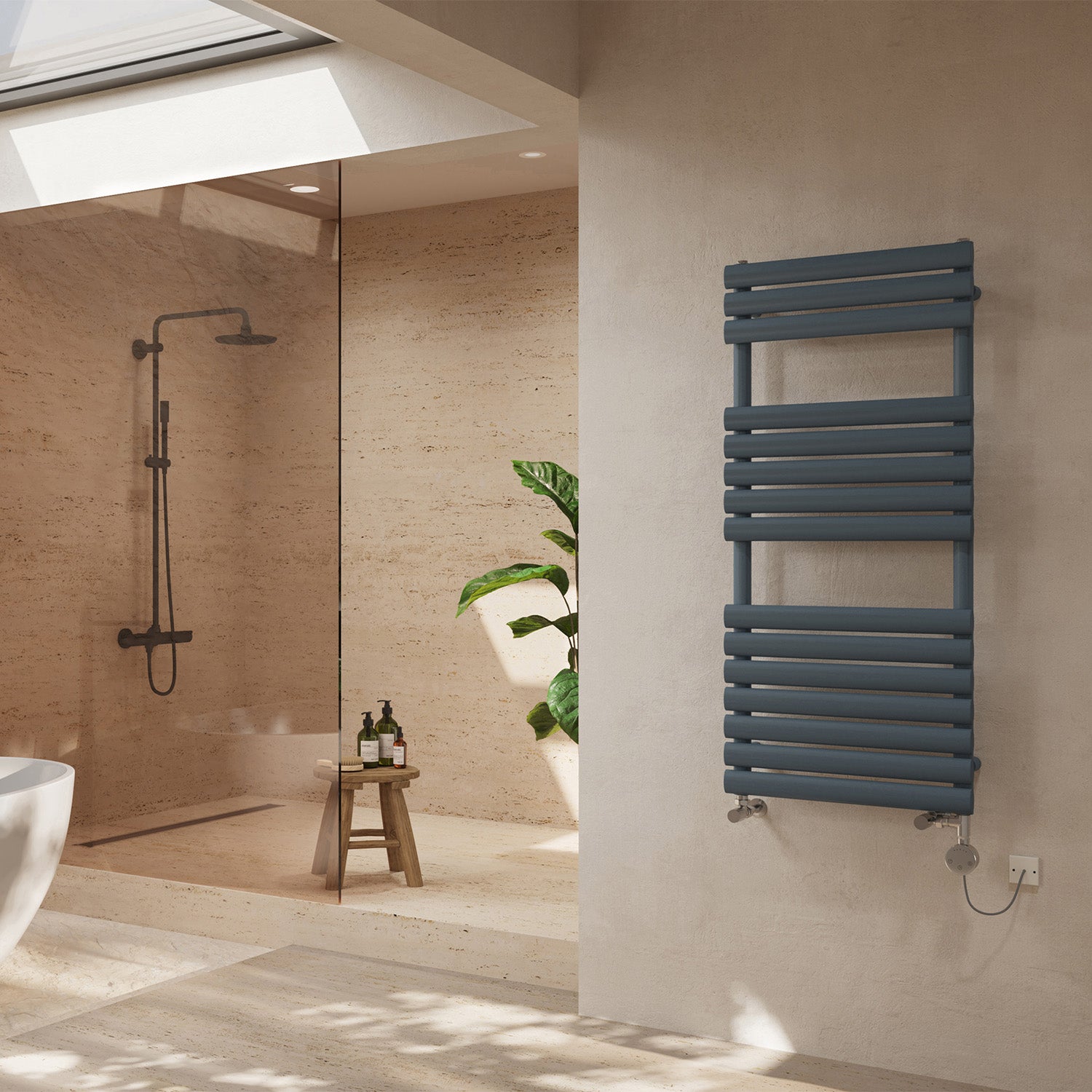Omeara - Anthracite Dual Fuel Towel Rail H1120mm x W500mm Thermostatic