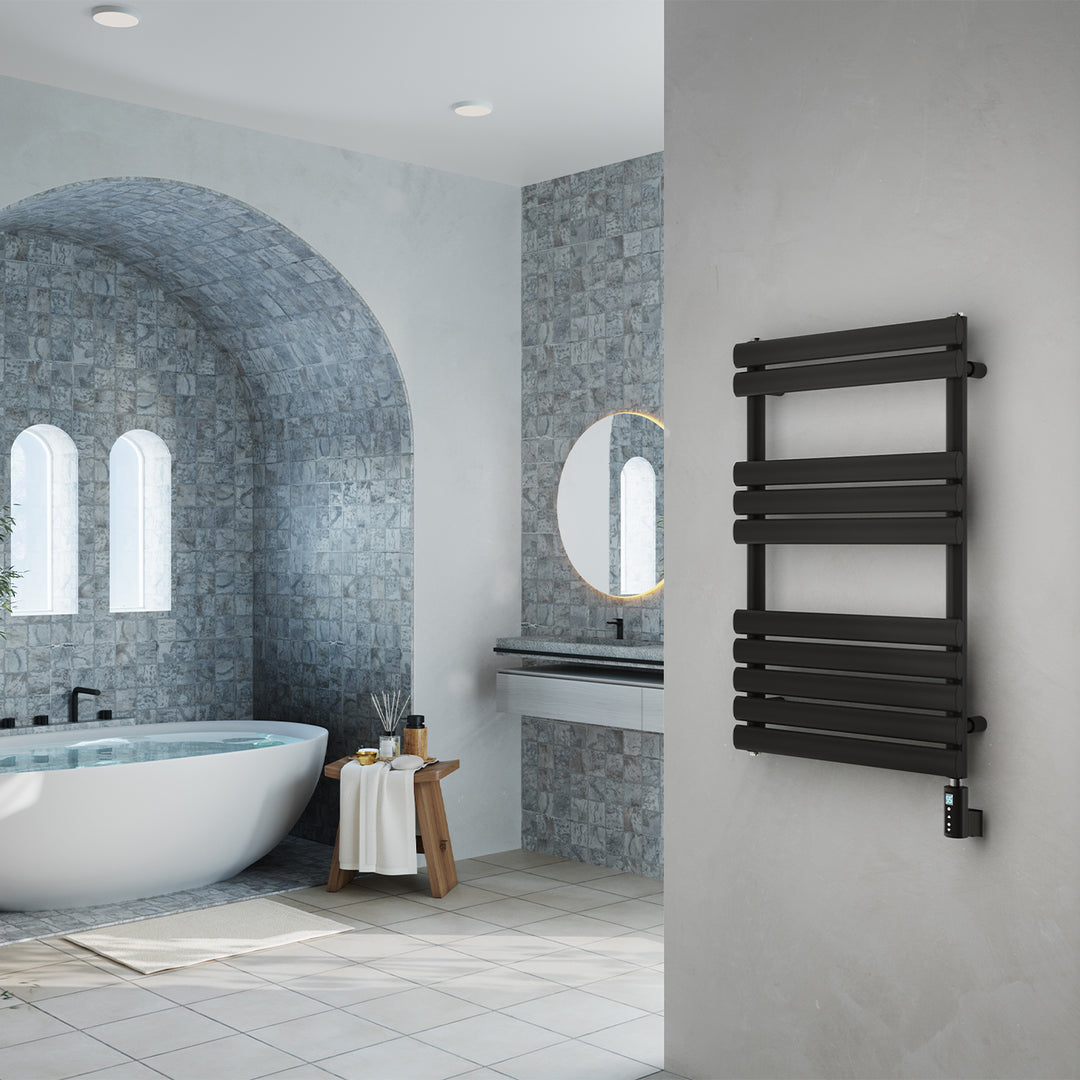 Omeara - Black Electric Towel Rail H825mm x W500mm 300w Thermostatic WIFI