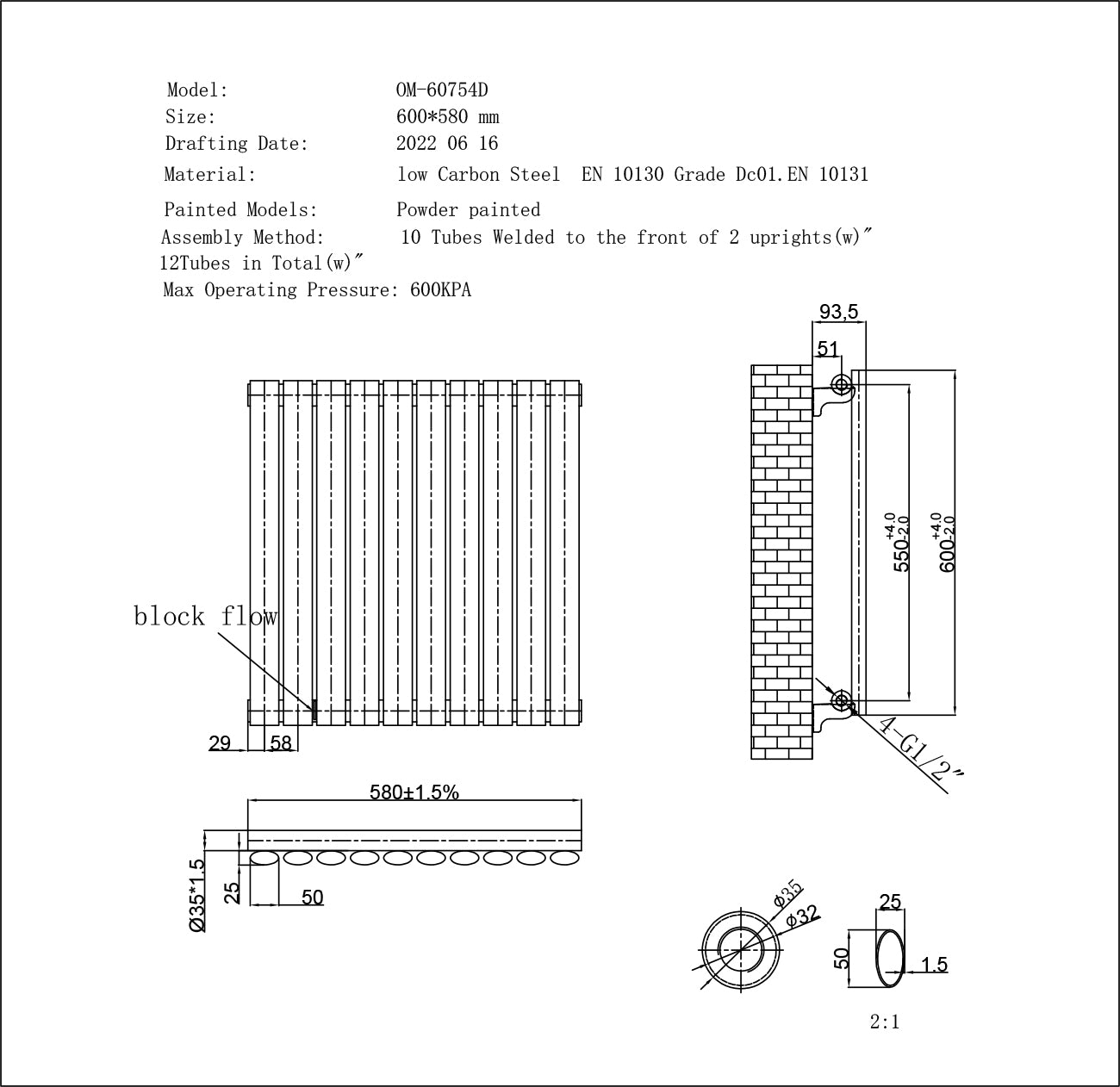 Maximum Operating Pressure (kPa): 600.0