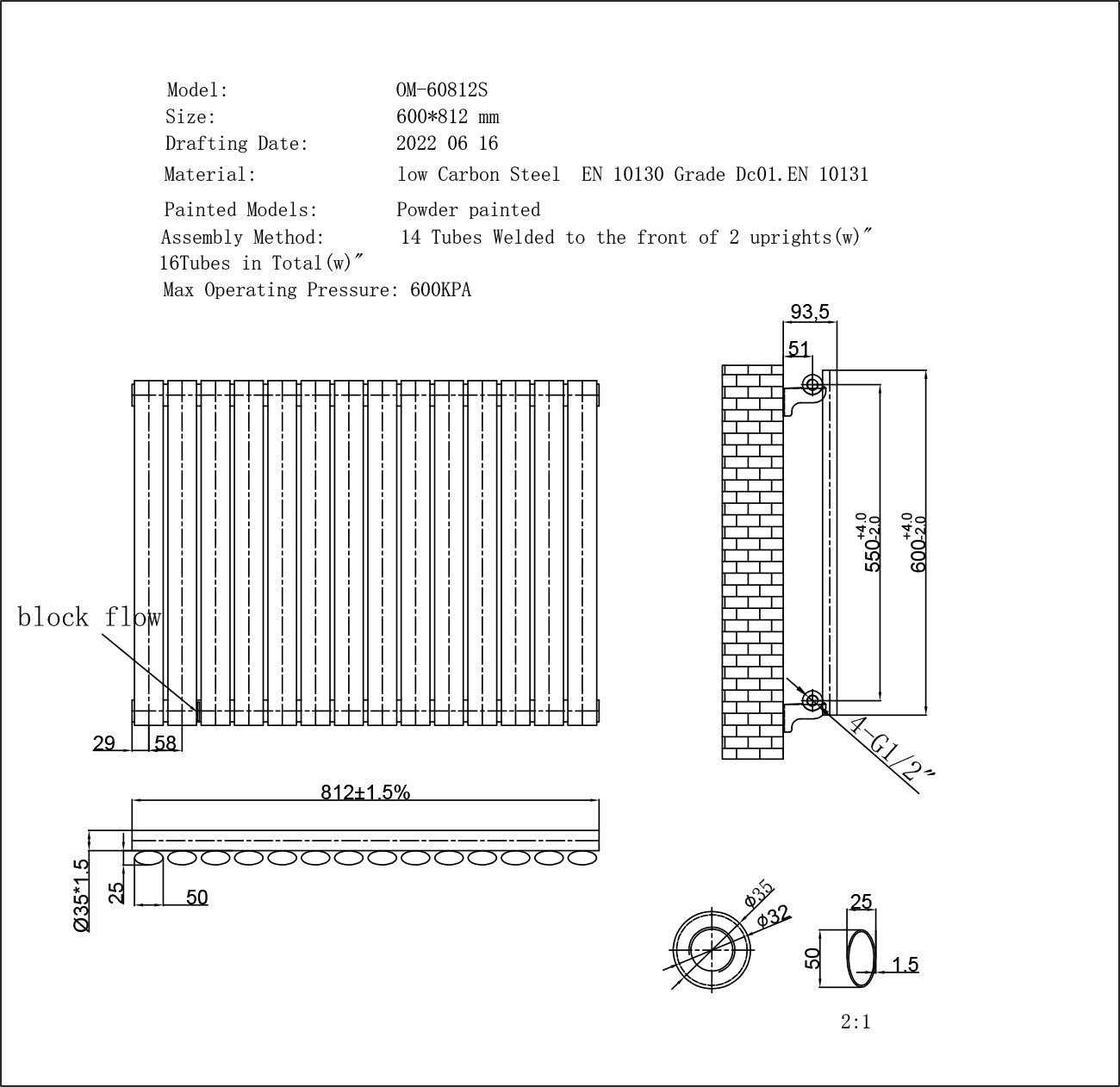 Wide and eye-catching, this black radiator brings functional warmth to your home with modern flair. It outputs 2102 BTUs (616W), making it ideal for medium-sized rooms in need of reliable comfort. The elliptical tube construction and matt finish create a soft, modern profile that complements any décor. Its low projection design maximises wall space without sacrificing performance. Compatible with central heating or hot water systems and protected by a 20-year guarantee, it’s built to impress and endure.