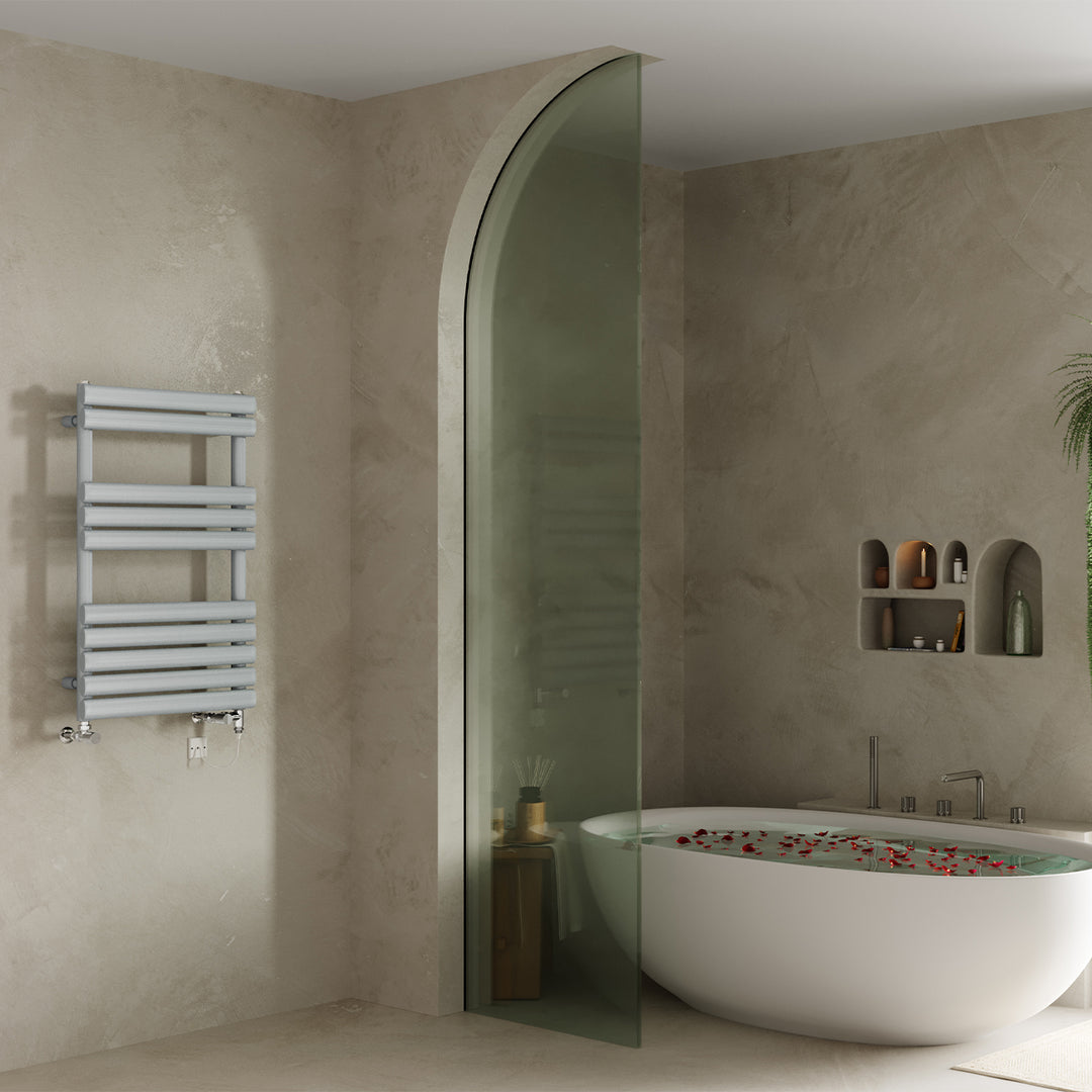 Omeara - Silver Dual Fuel Towel Rail H825mm x W500mm Standard