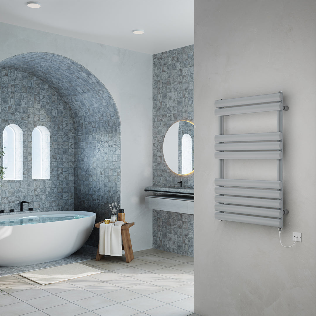 Omeara - Silver Electric Towel Rail H825mm x W500mm 400w Standard