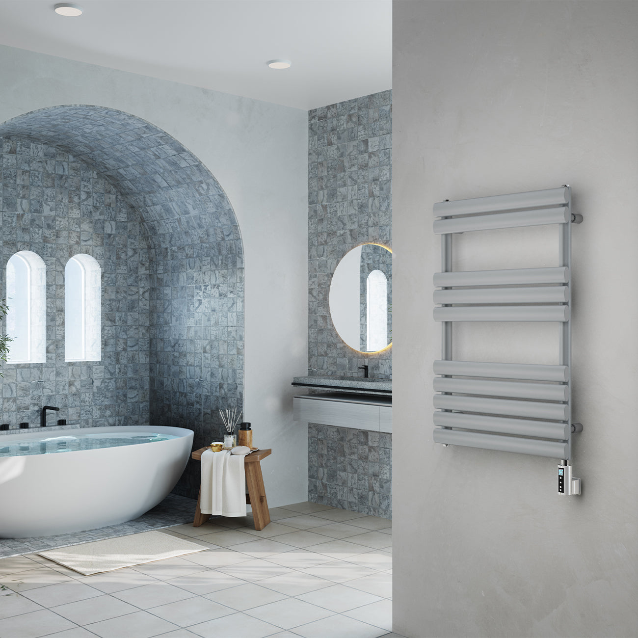 Omeara - Silver Electric Towel Rail H825mm x W500mm 300w Thermostatic WIFI