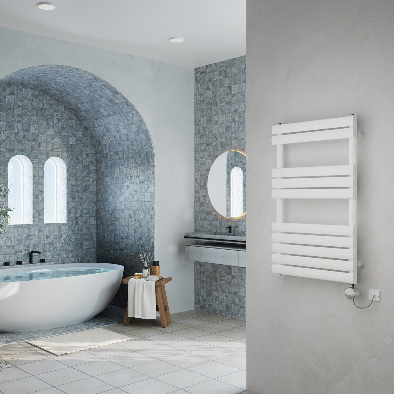 Omeara - White Electric Towel Rail H825mm x W500mm 300w Thermostatic