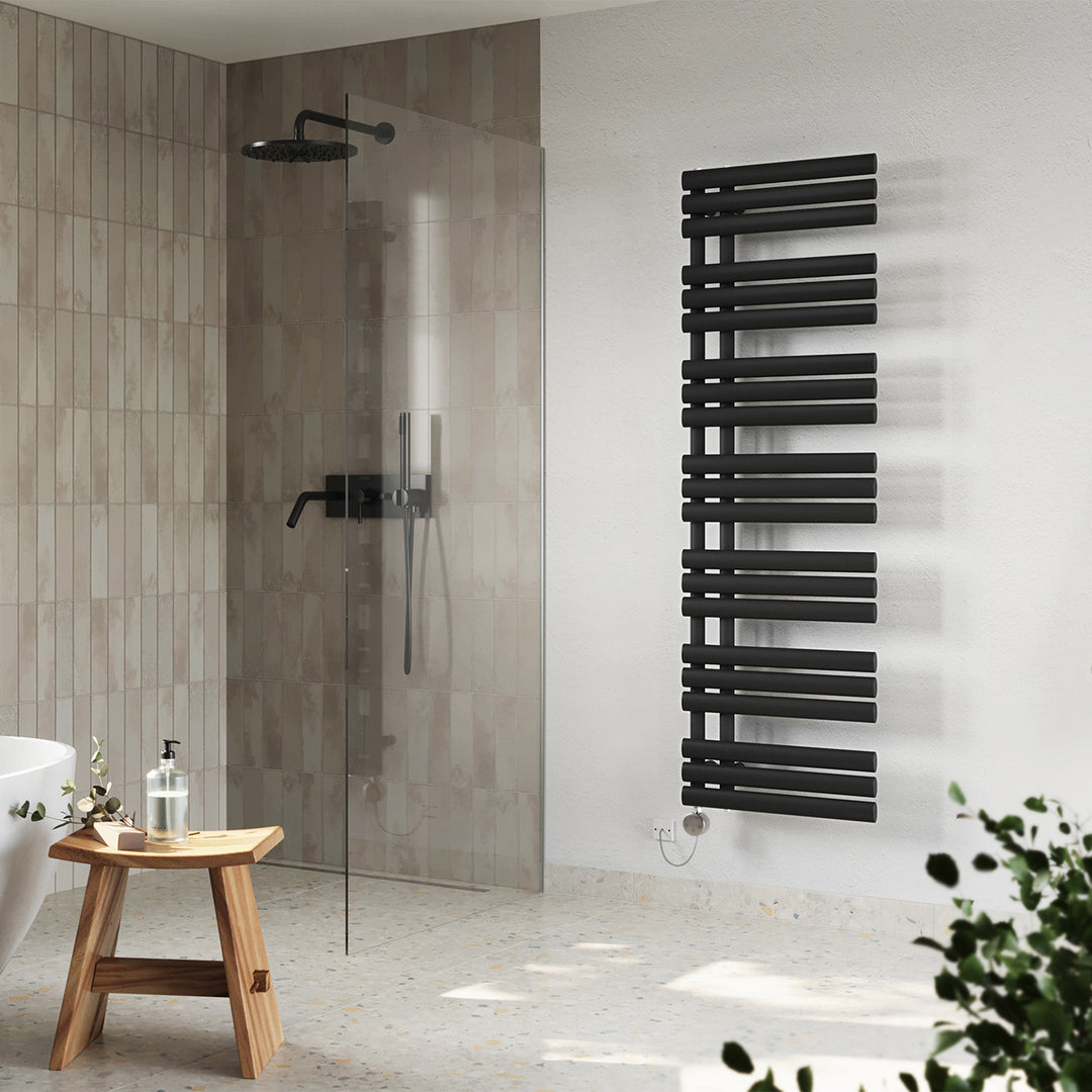Percival - Black Electric Towel Rail H1592mm x W500mm 600w Thermostatic