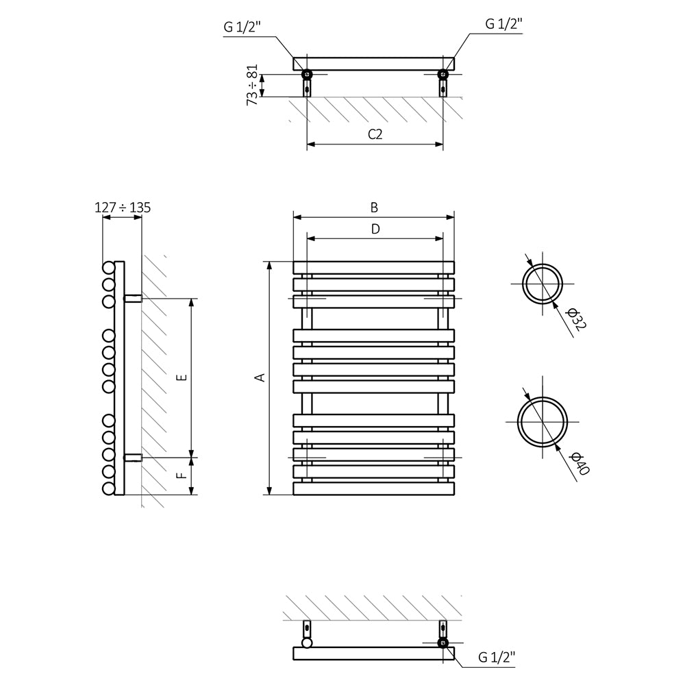 Rolo-Towel - Salt & Pepper Towel Radiator - H755mm x W520mm