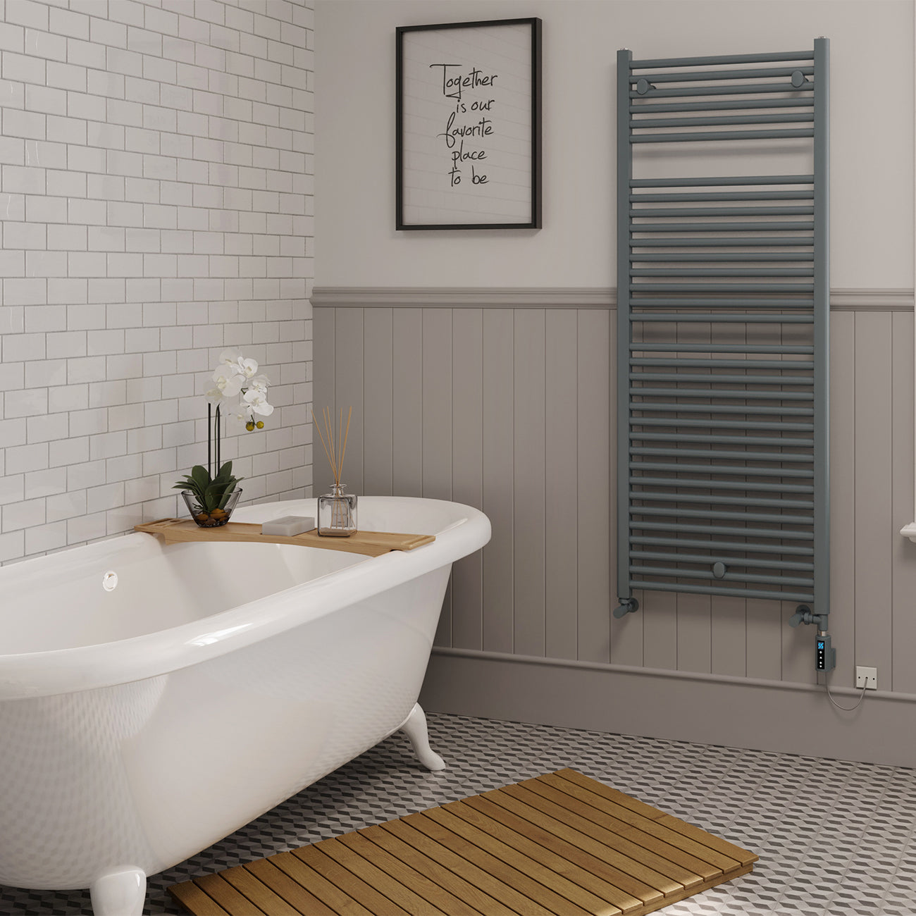 Roma - Anthracite Dual Fuel Towel Rail H1512mm x W600mm Thermostatic WIFI - Straight