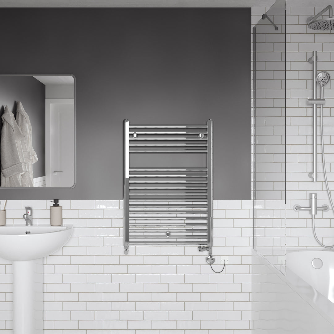 Roma - Chrome Dual Fuel Towel Rail H842mm x W600mm Thermostatic - Straight