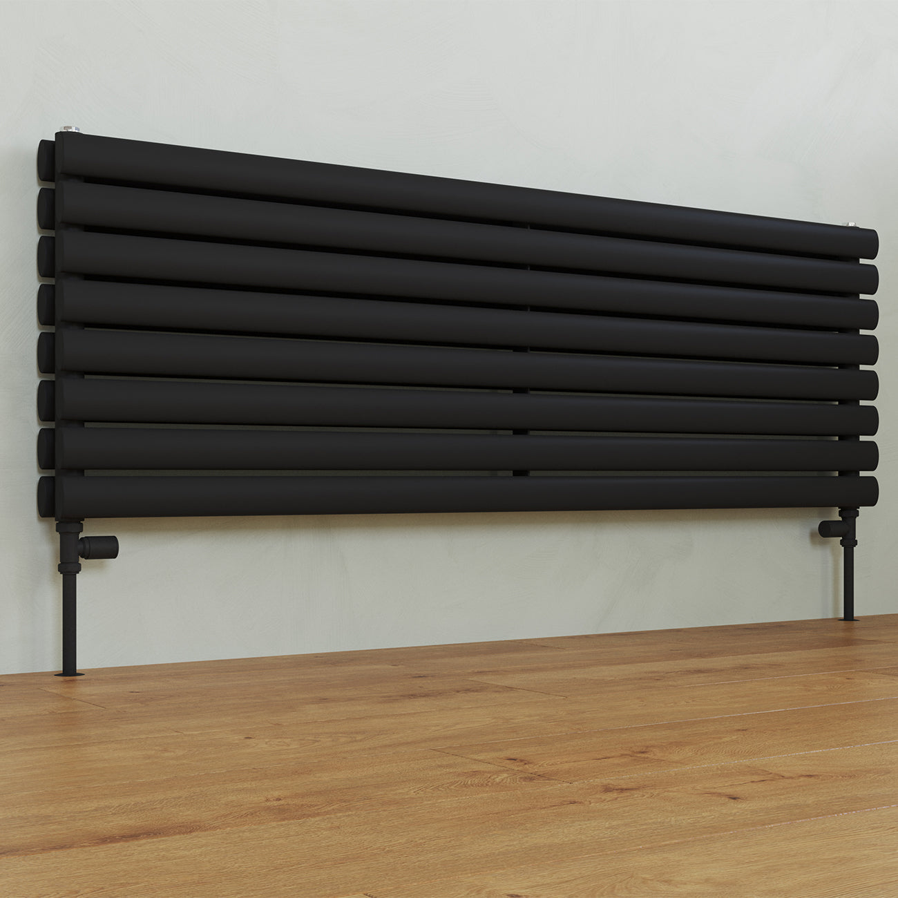 - Pipework comes from the floorboard up to the radiator, and the radiator connection is on the bottom.