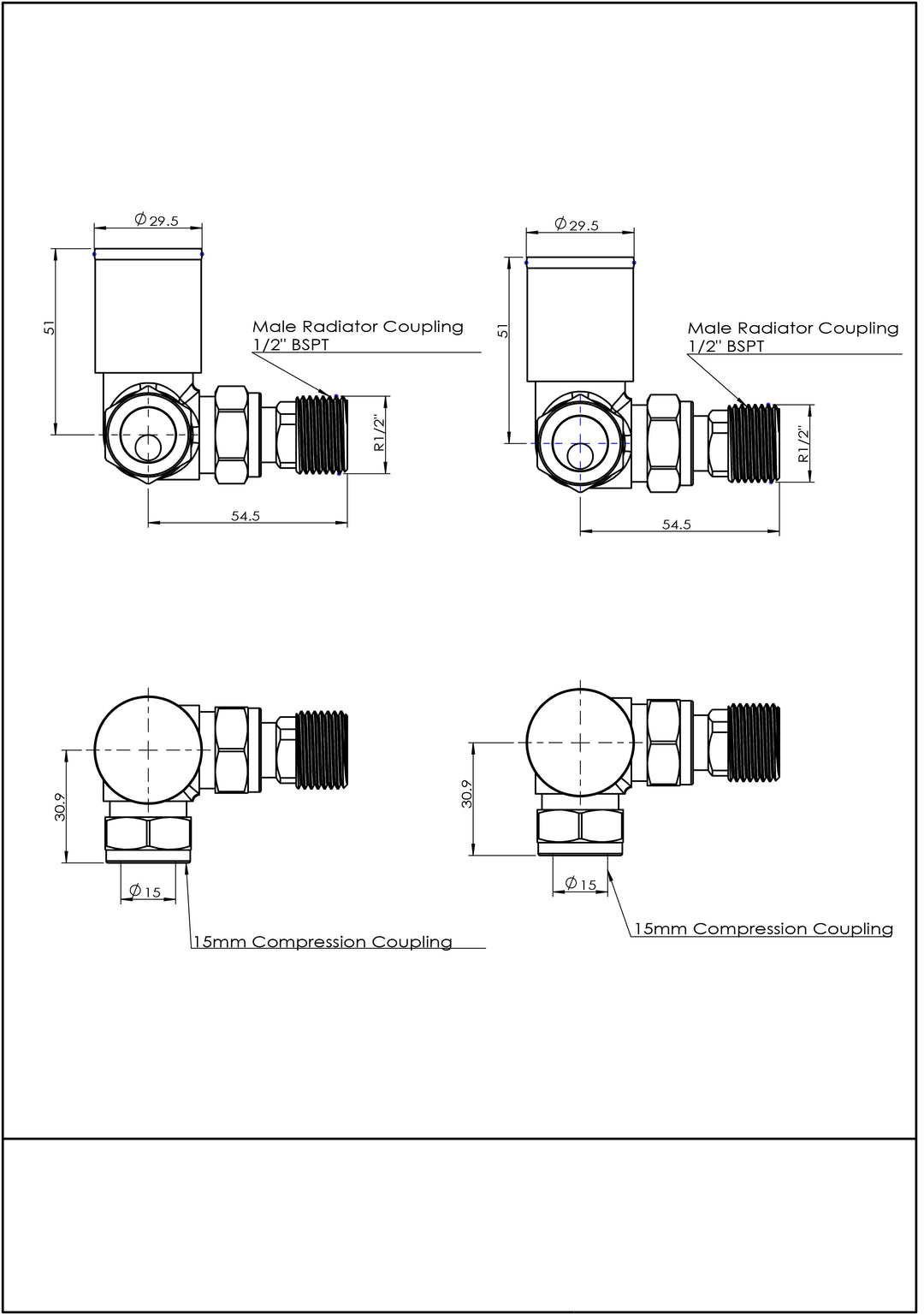 All of our corner radiator valves come with matching lockshield valves to be fitted on the return side of the radiator or towel rail.