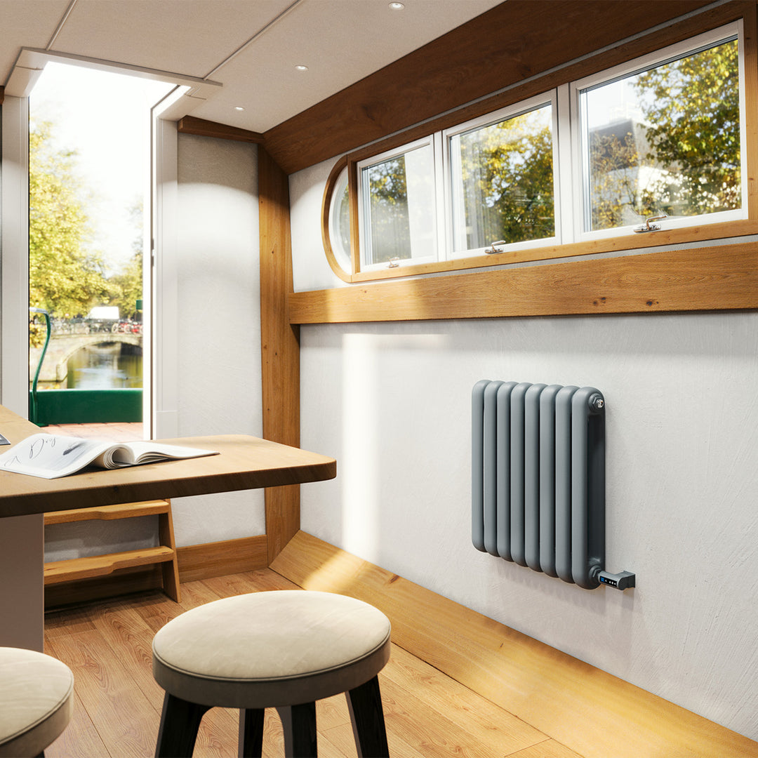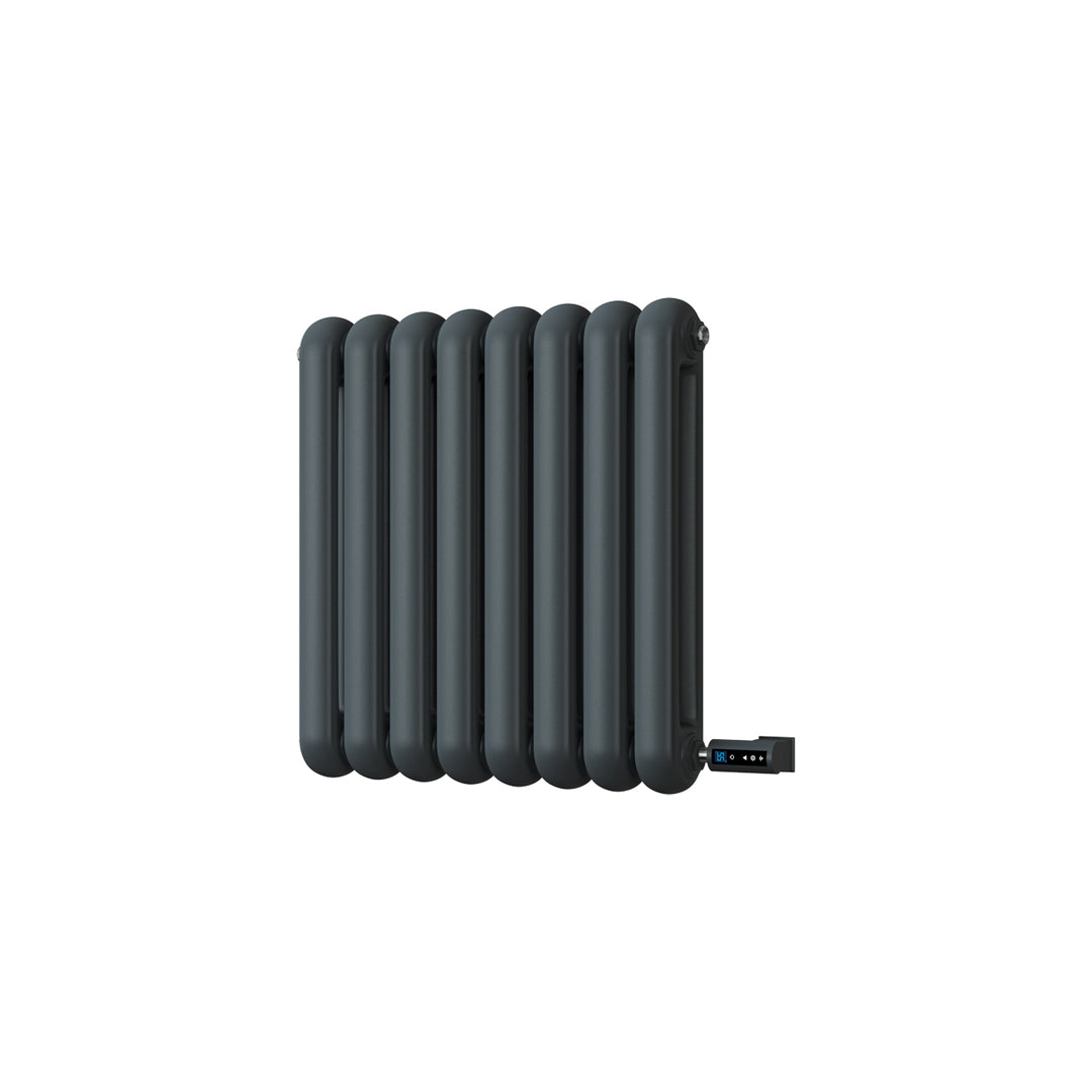 Sherwood - Anthracite Round Top Column Electric Radiator H600mm x W576mm 2 Column 300w Thermostatic WIFI