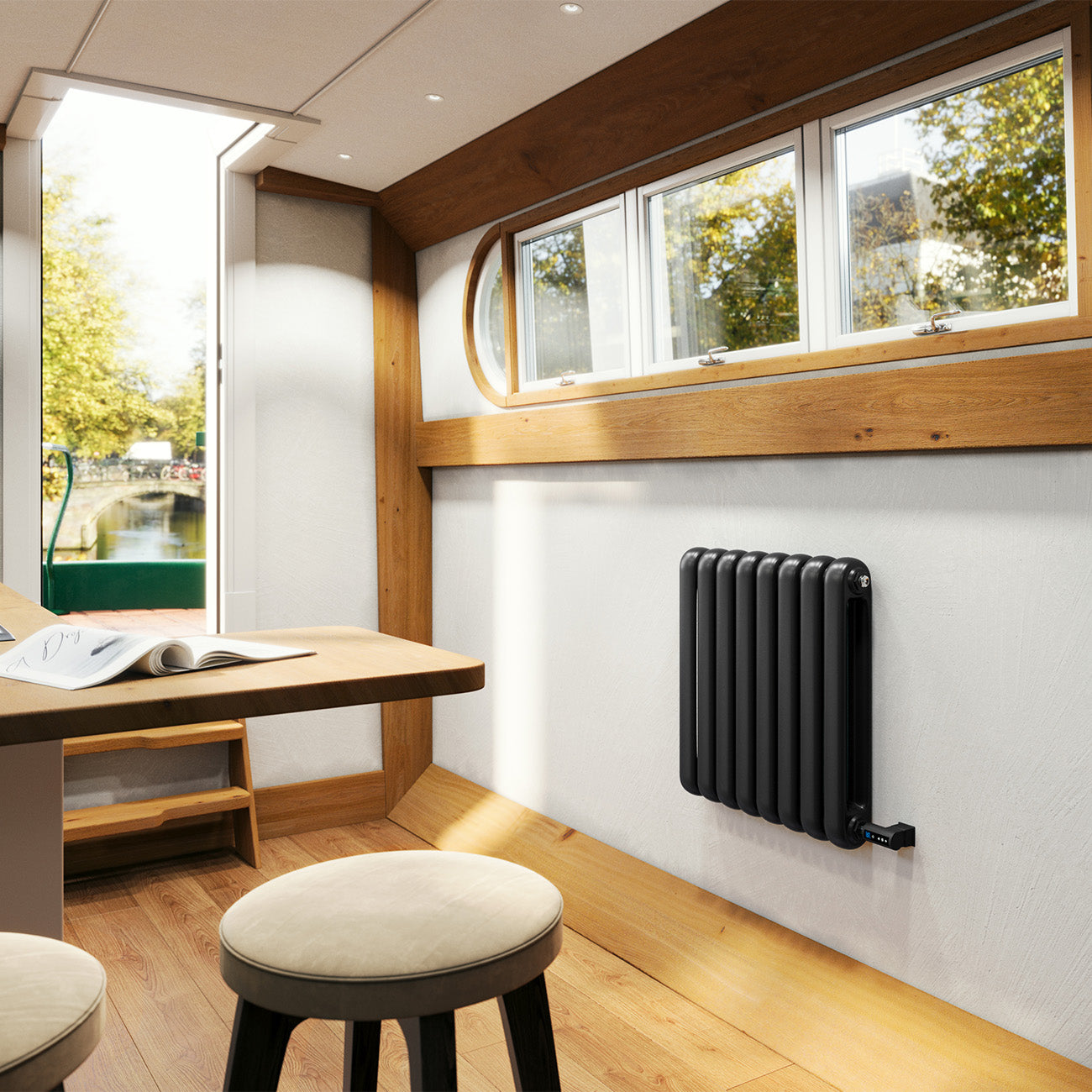Sherwood - Black Round Top Column Electric Radiator H600mm x W576mm 2 Column 300w Thermostatic WIFI