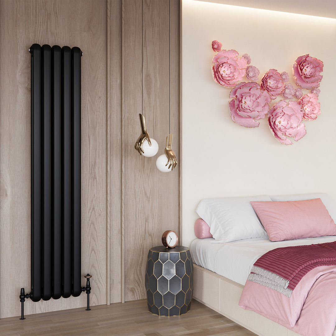 Sherwood - Black Vertical Round Top Column Radiator H1800mm x W368mm 2 Column
