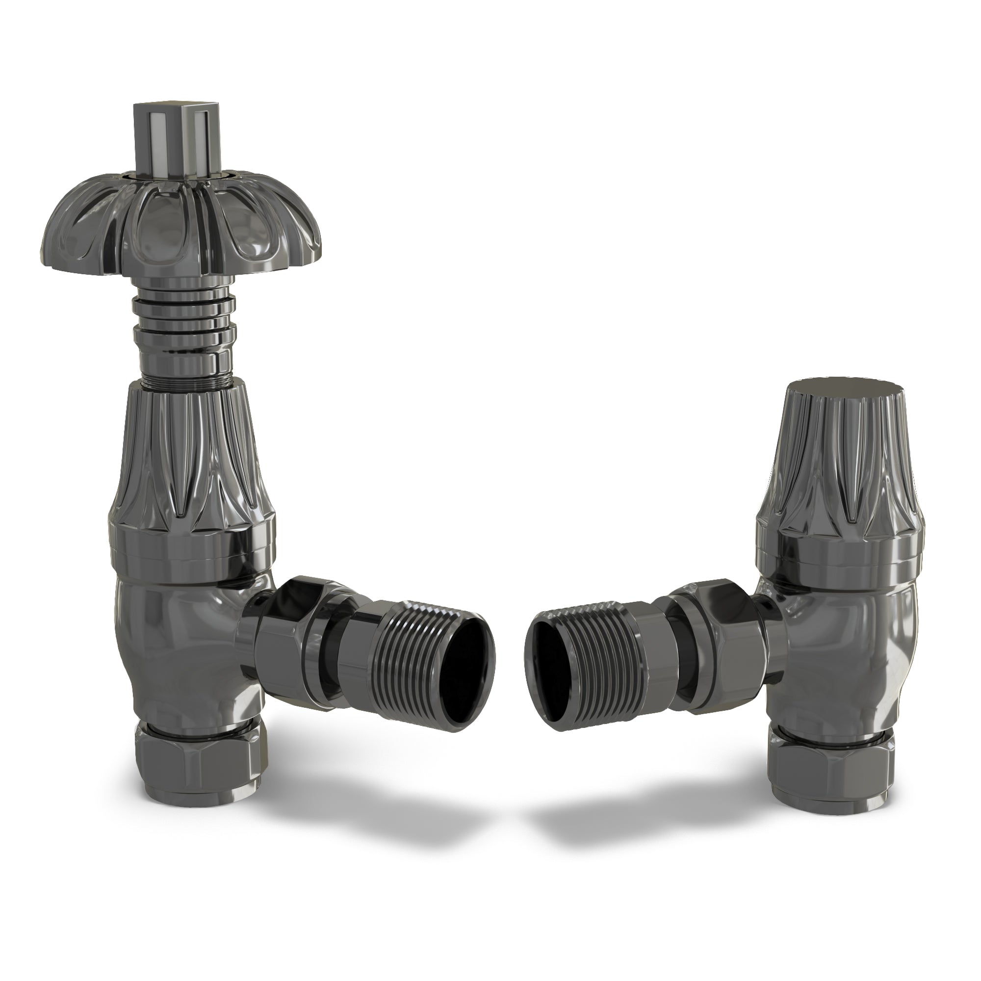 Signature Metal Head - Black Nickel Thermostatic Radiator Valve & Lockshield Angled 10mm