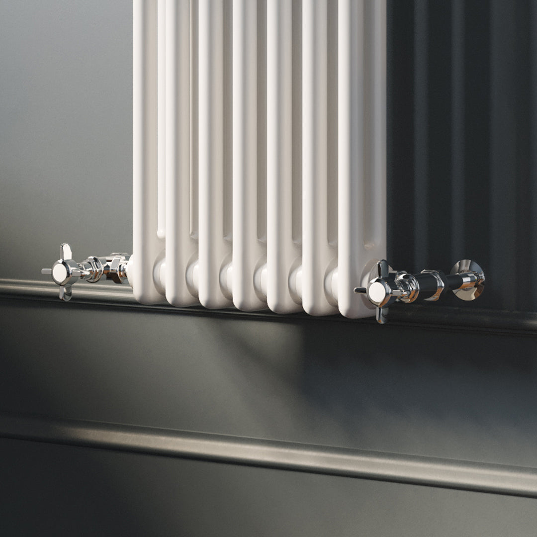 These valves have a 1/2" BSP radiator connection and so will fit all radiators and towel rails in the UK. The other connection to consider is that of your pipework, these valves have a 8mm pipework connection (usually termed “microbore” pipework) and so will fit pipework of the same size. We have these valves available in 15mm and 10mm for those with standard (15mm) or larger microbore (10mm) pipework.