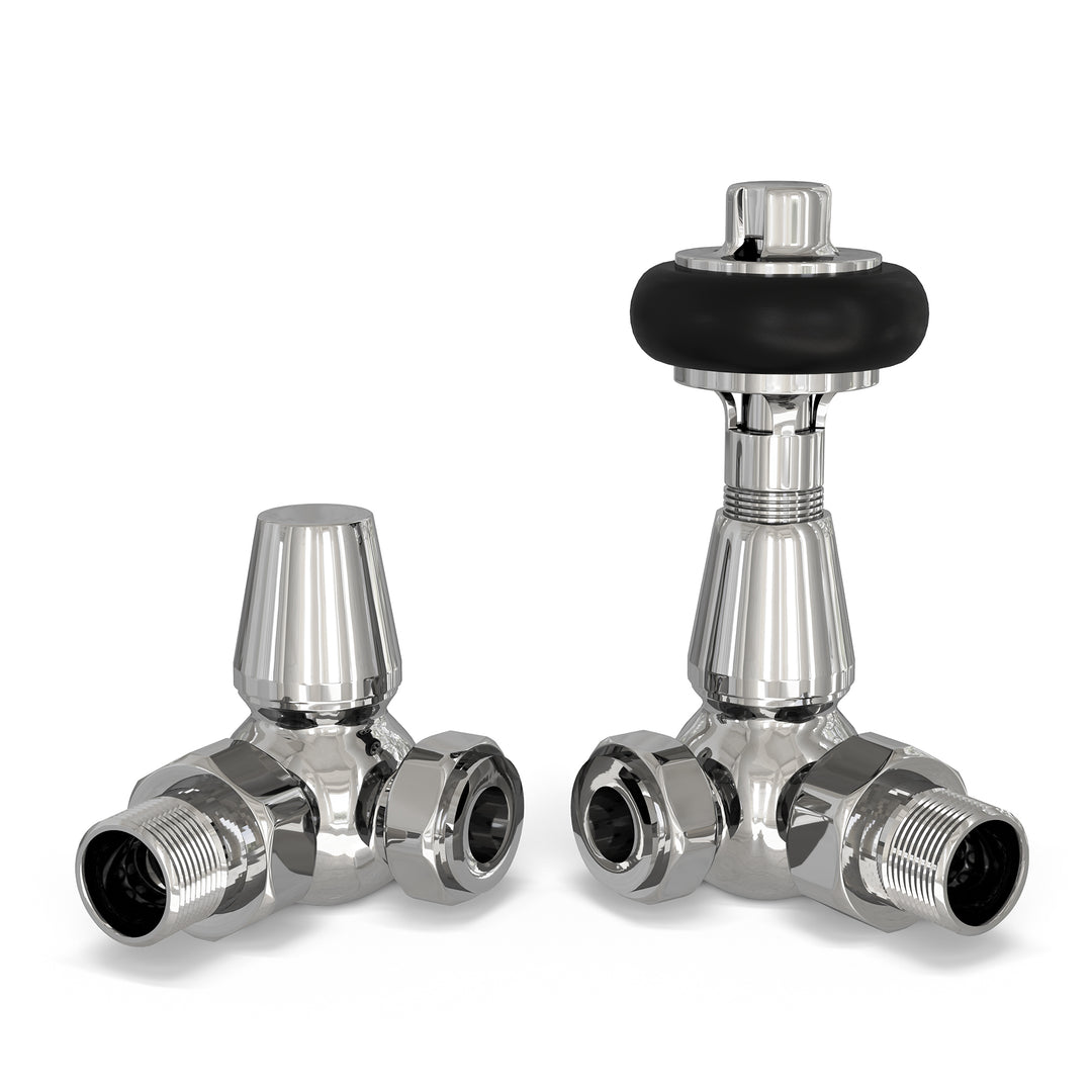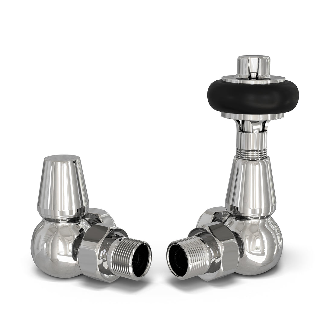 Signature Wooden Head - Chrome Thermostatic Radiator Valve & Lockshield Corner 8mm