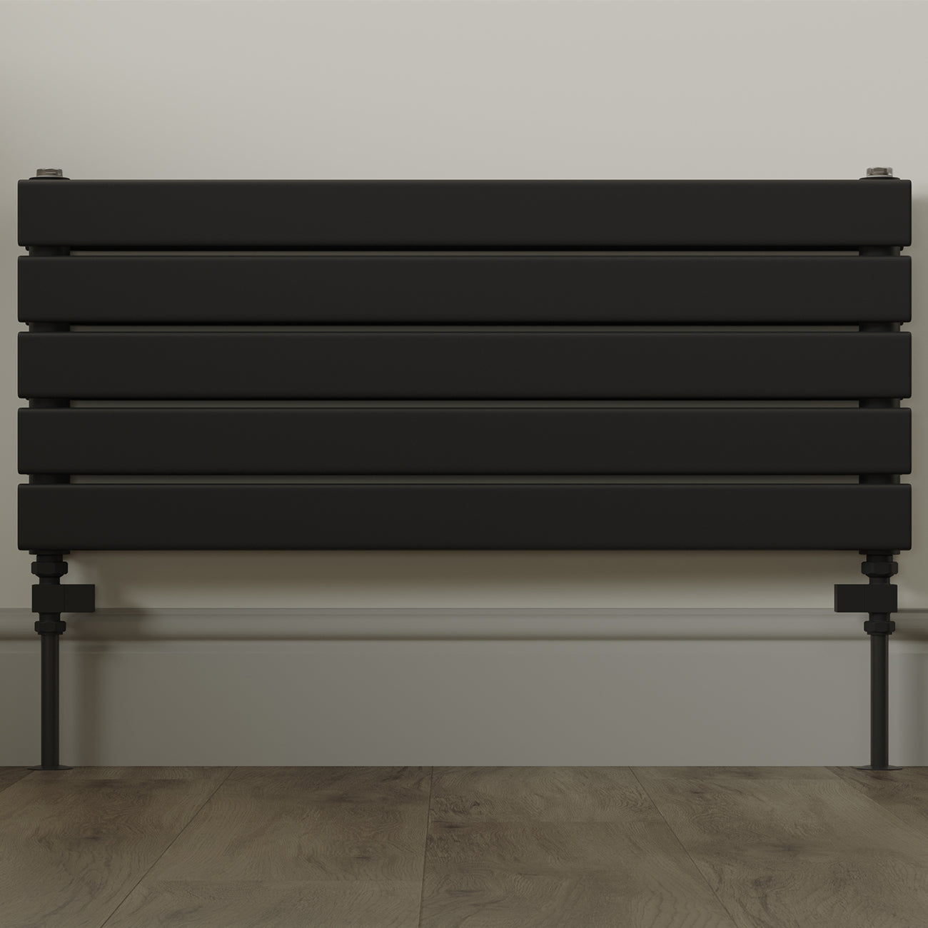 - Pipework comes from the floorboard up to the radiator, and the radiator connection is on the bottom.