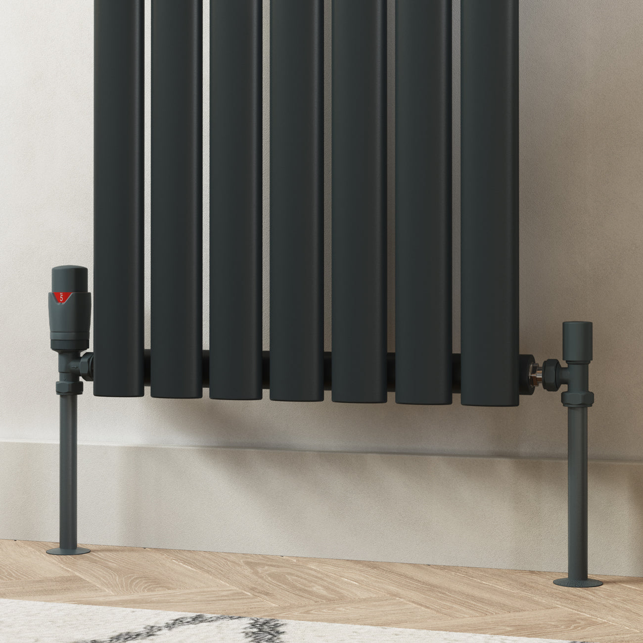 Stirling Bold - Anthracite Thermostatic Radiator Valve & Lockshield Angled 15mm
